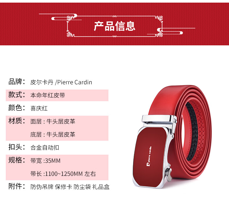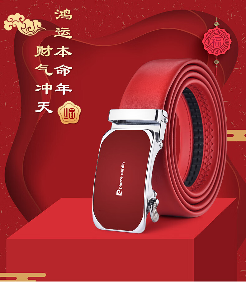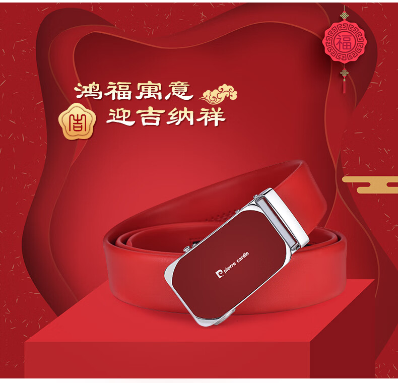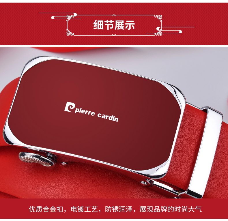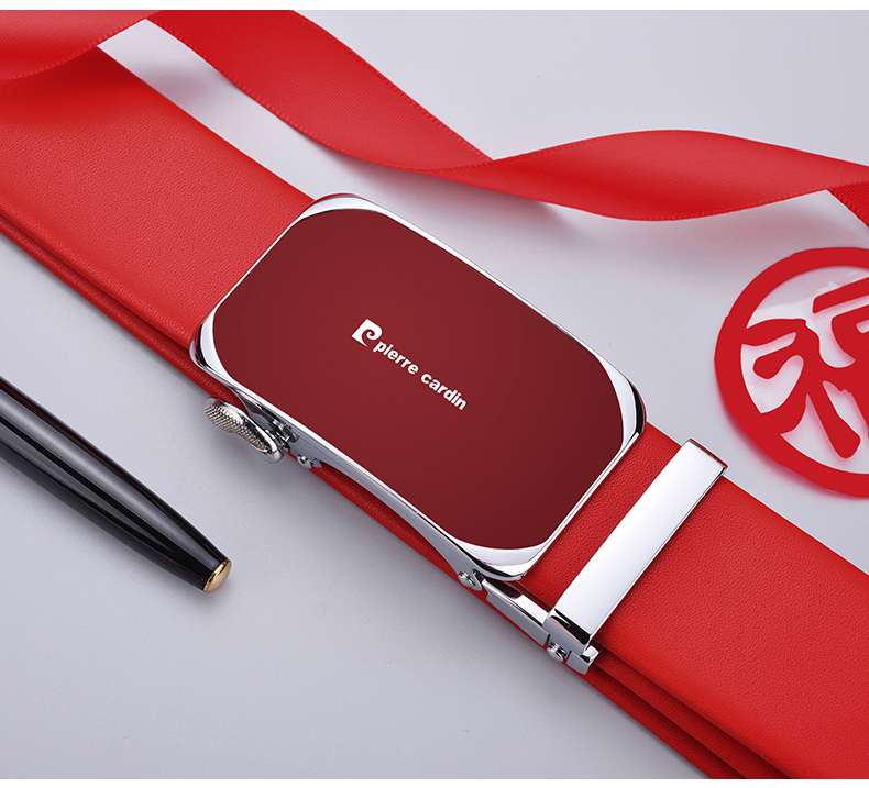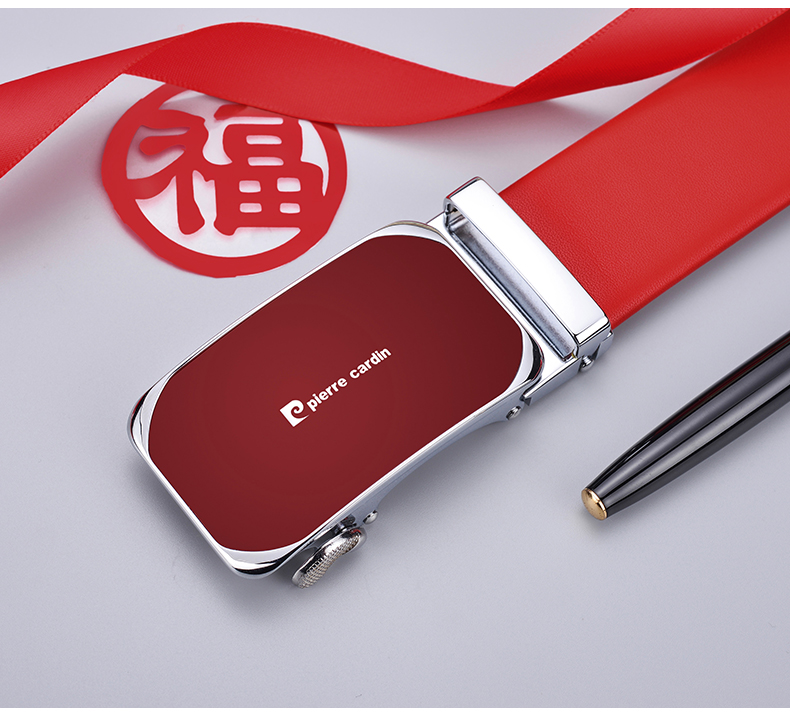 Pierre Cardin red belt men's first-layer cowhide automatic buckle belt gift box gift box New Year red 125cm