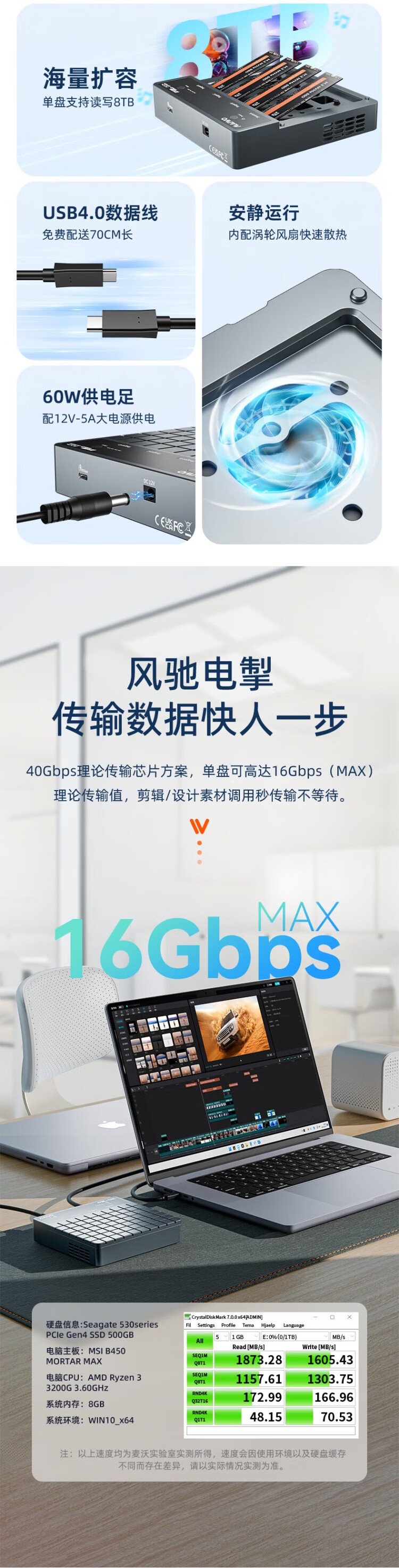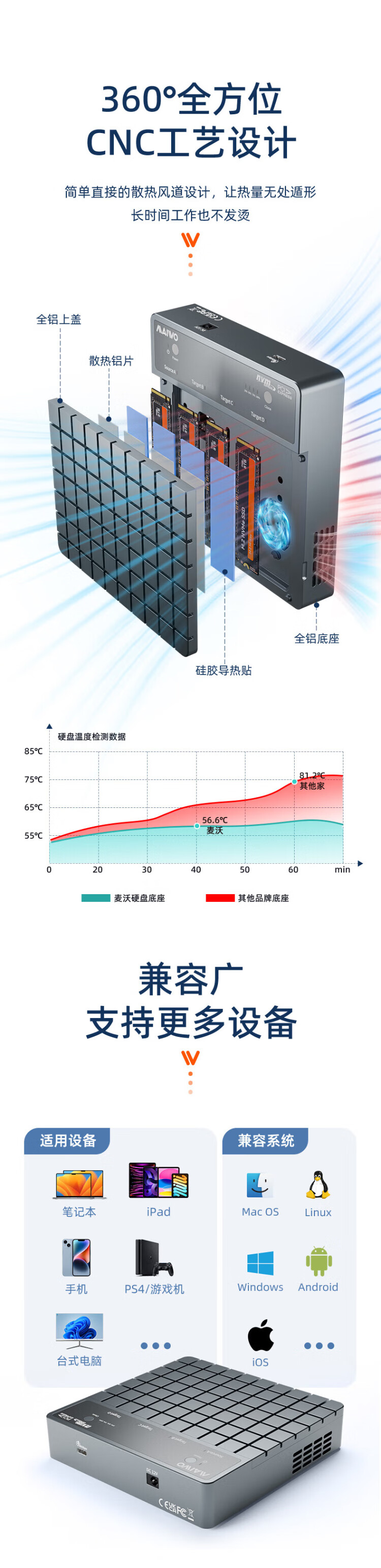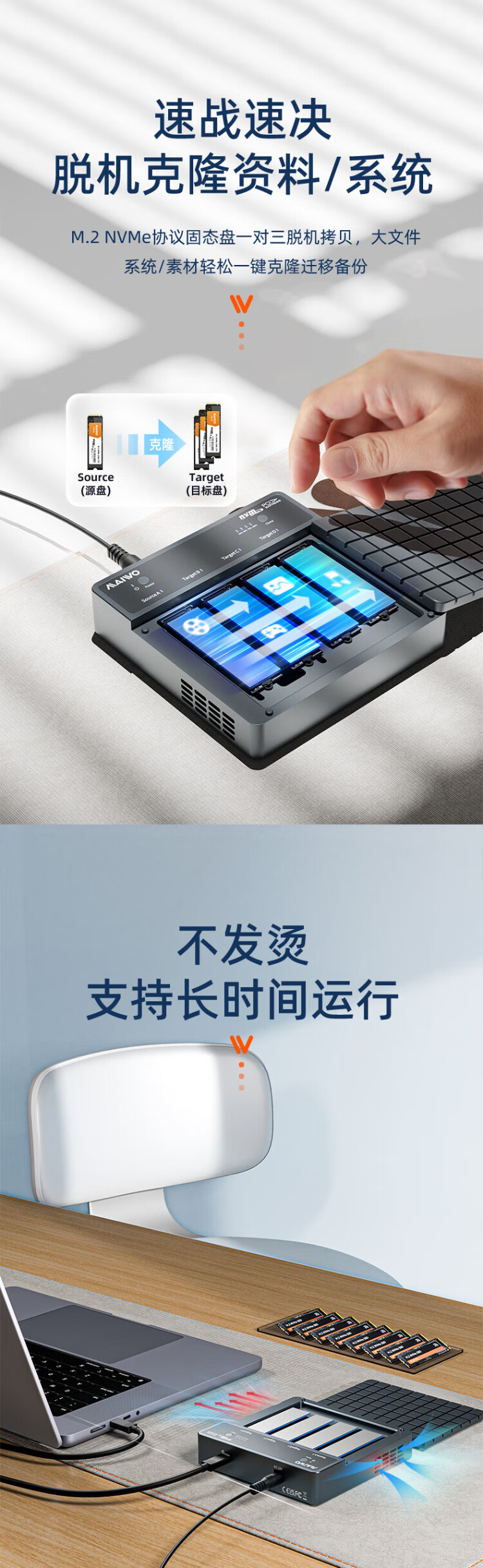 麦沃(MAIWO)USB4.0硬盘拷贝机 40Gbps M.2 NVNe固态硬盘底座 四盘位涡轮风扇笔记本台式电脑硬盘读写盒 K2024