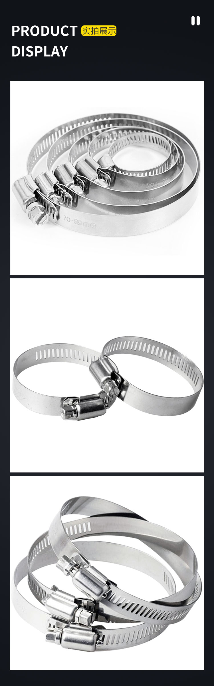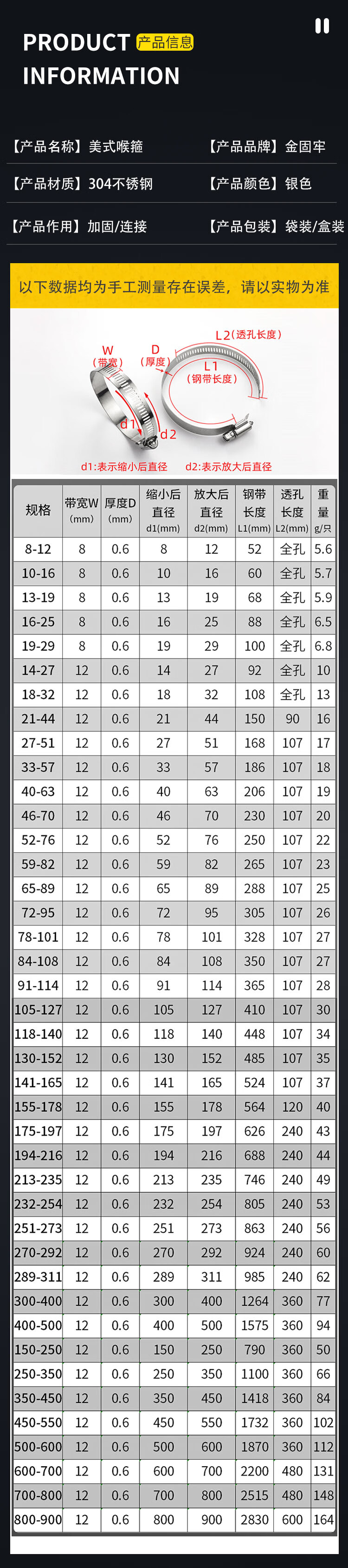 Jinguluo 304 stainless steel American clamp, hose clamp, water pipe clamp, gas pipe buckle fixed pipe clamp 18-32 (10 pieces)