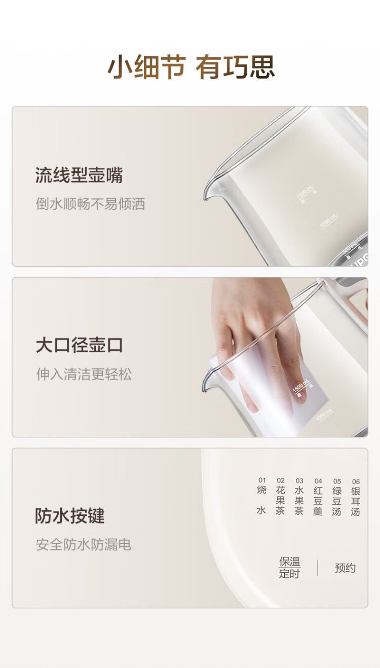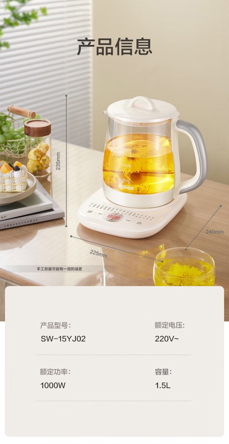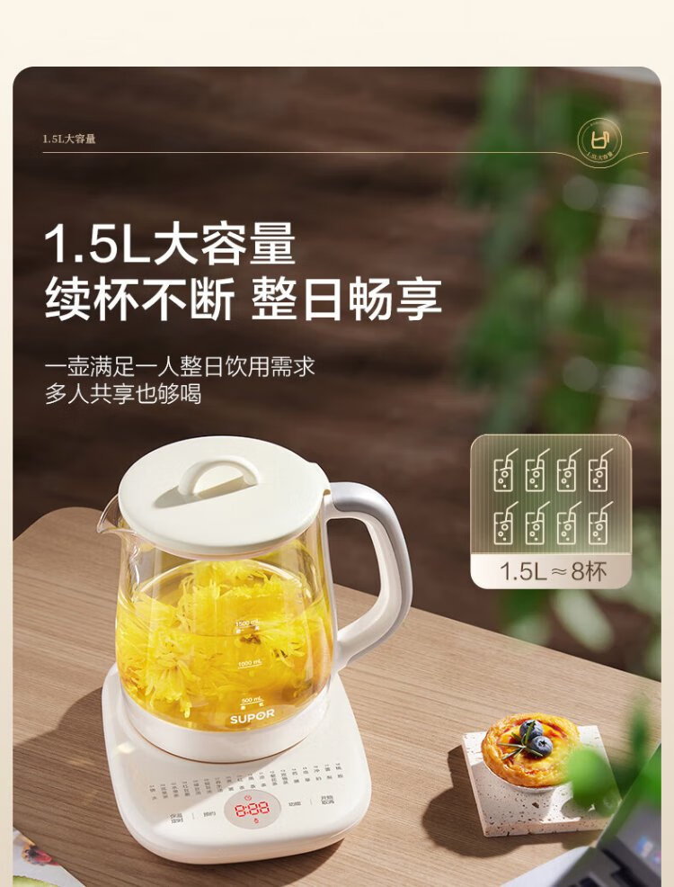 SUPOR health kettle 1.5L large capacity tea kettle flower tea kettle constant temperature kettle kettle electric kettle office thermal insulation tea kettle SW-15YJ02B