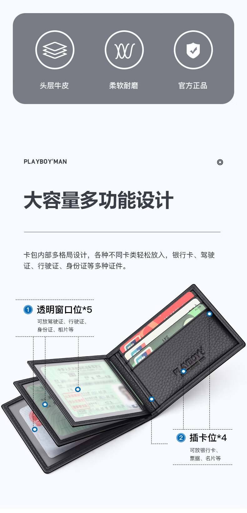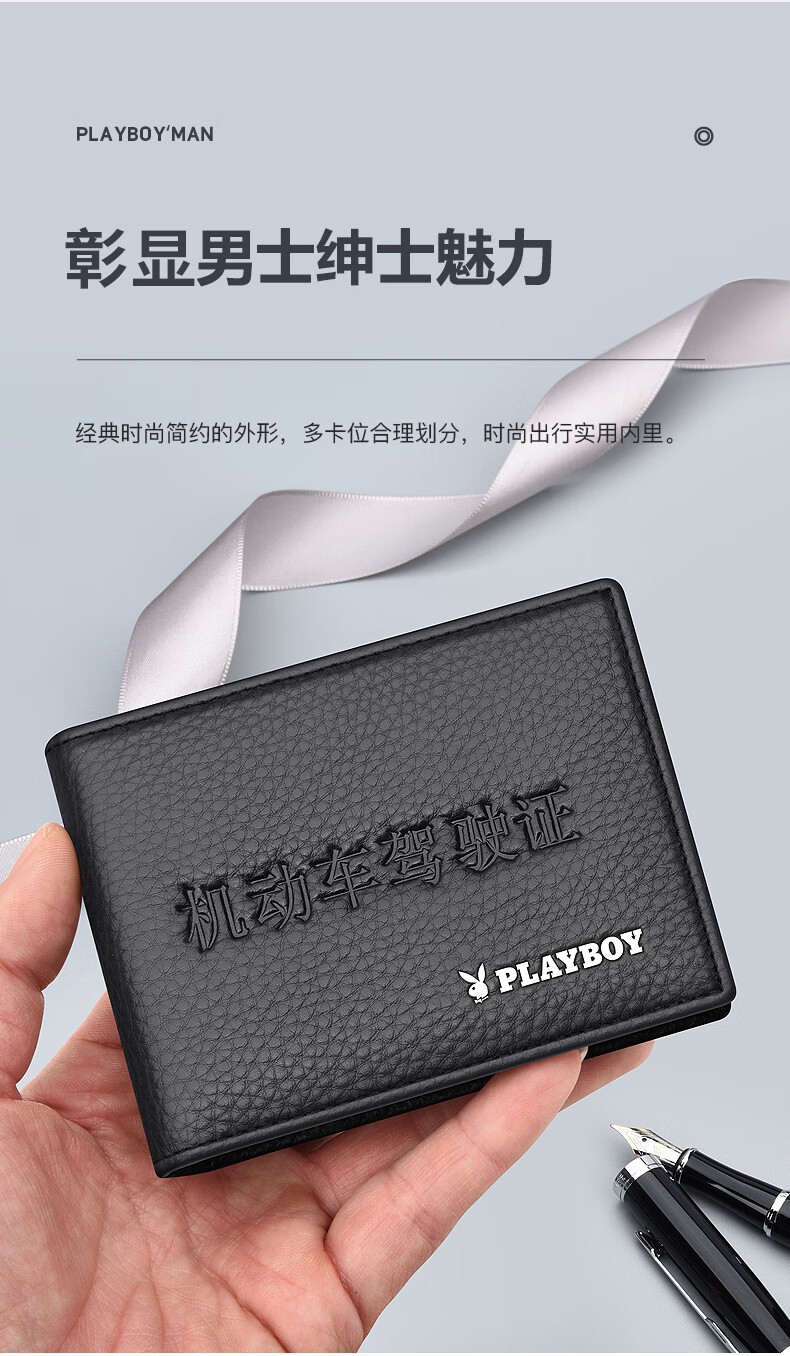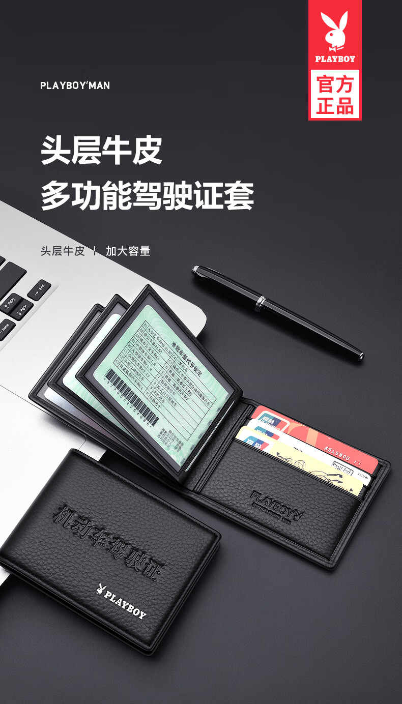 Playboy Driver's License Leather Case Men's Protective Cover Real First-Layer Cowhide Pickup Bag Integrated Motor Vehicle License Card Cover Imprint