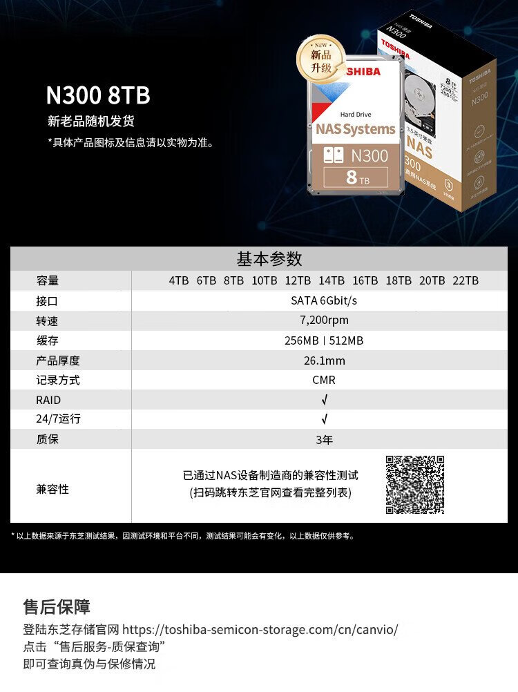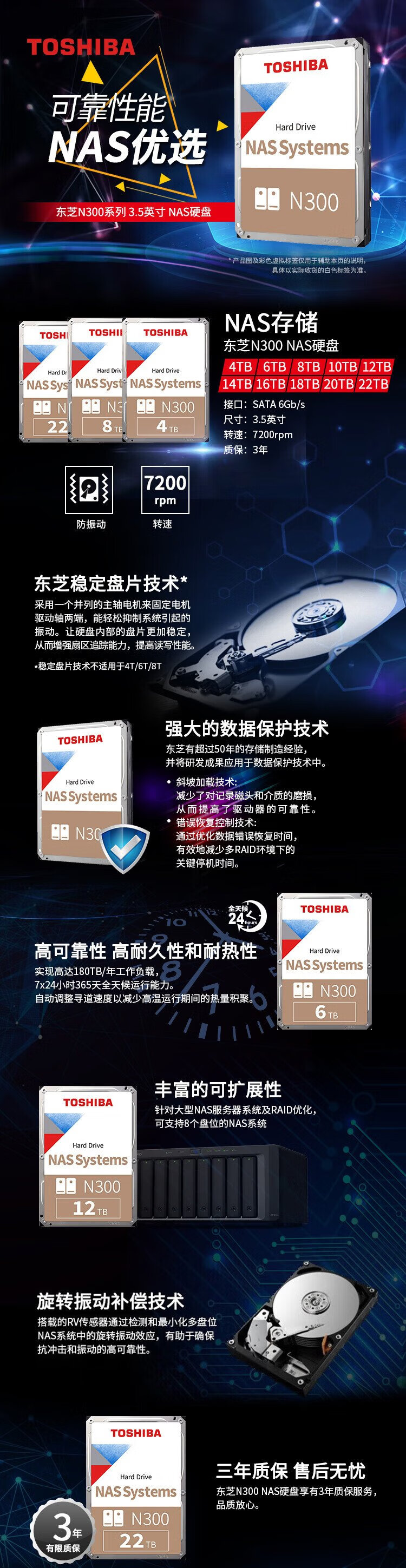 TOSHIBA 8TB NAS network storage mechanical hard drive private cloud home file storage 7200 rpm 512MB SATA interface N300 series