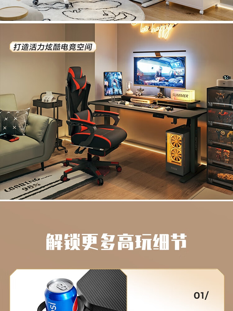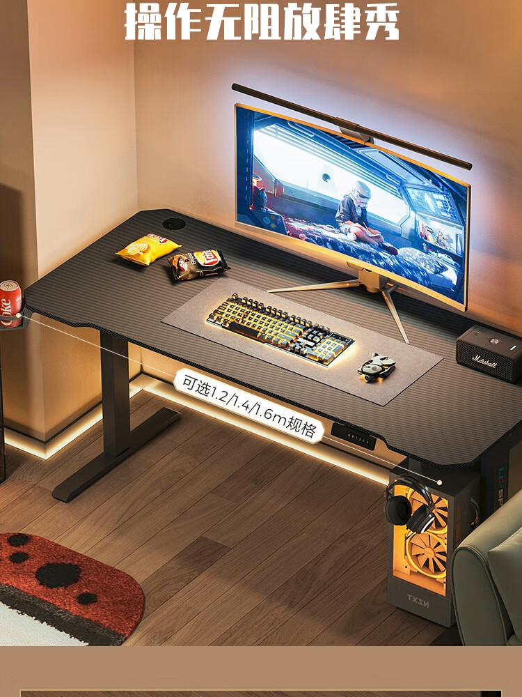 Lin's Home Multifunctional Electric Lift Table Home Student Study Table Gaming Table and Chair BG063 Black Table 1.6m