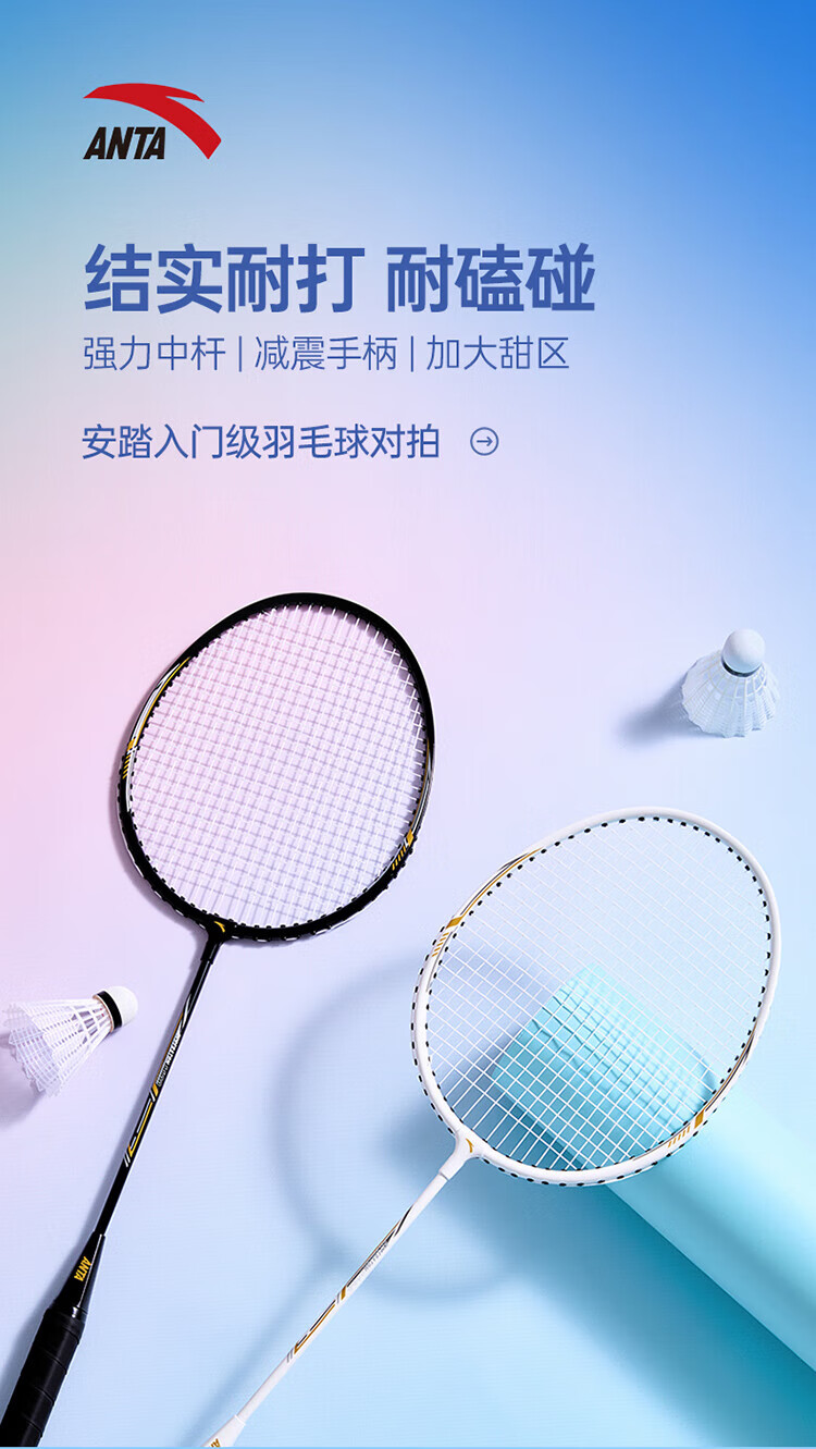 Anta badminton racket aluminum alloy basic training for men and women comes with a ball bag + three ball-resistant balls