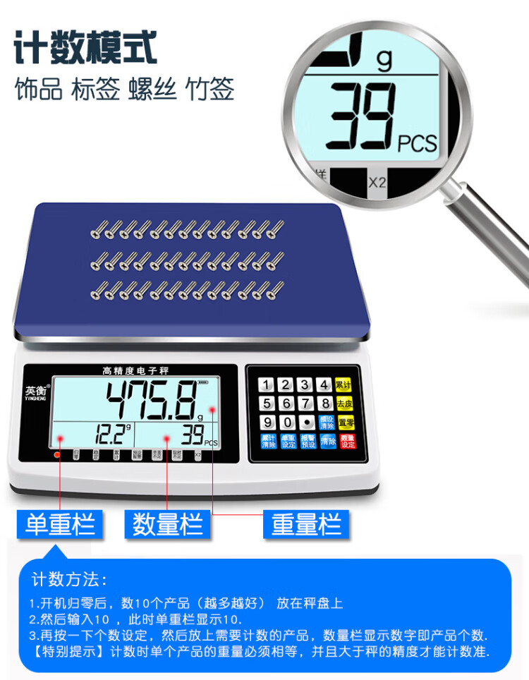 Yingheng high-precision electronic scale platform scale accurate counting scale weighing precision gram scale desktop scale industrial scale 30kg1g