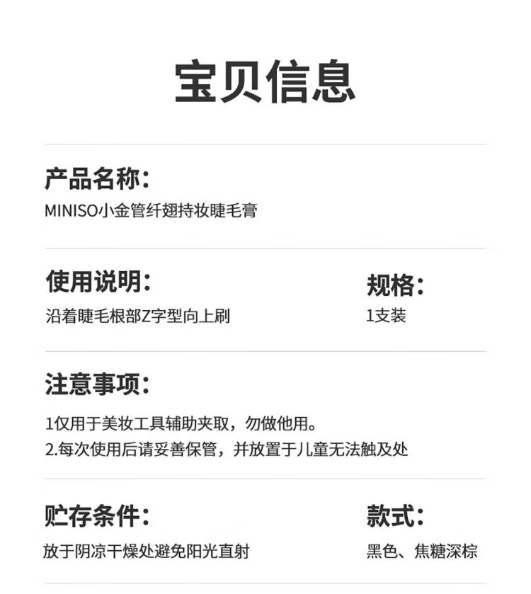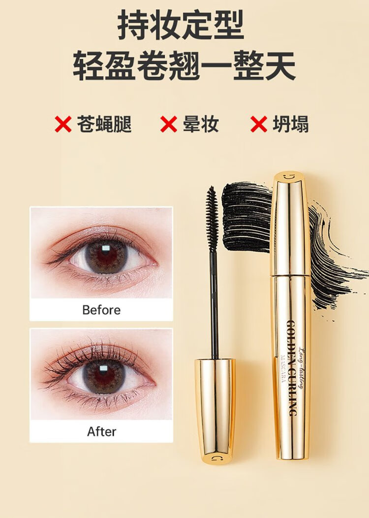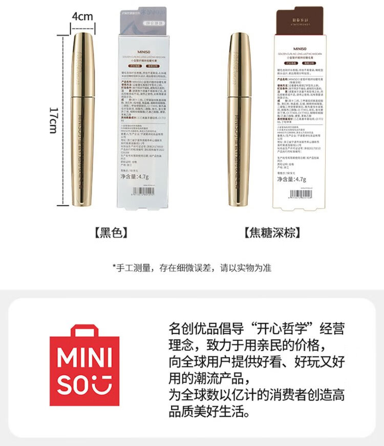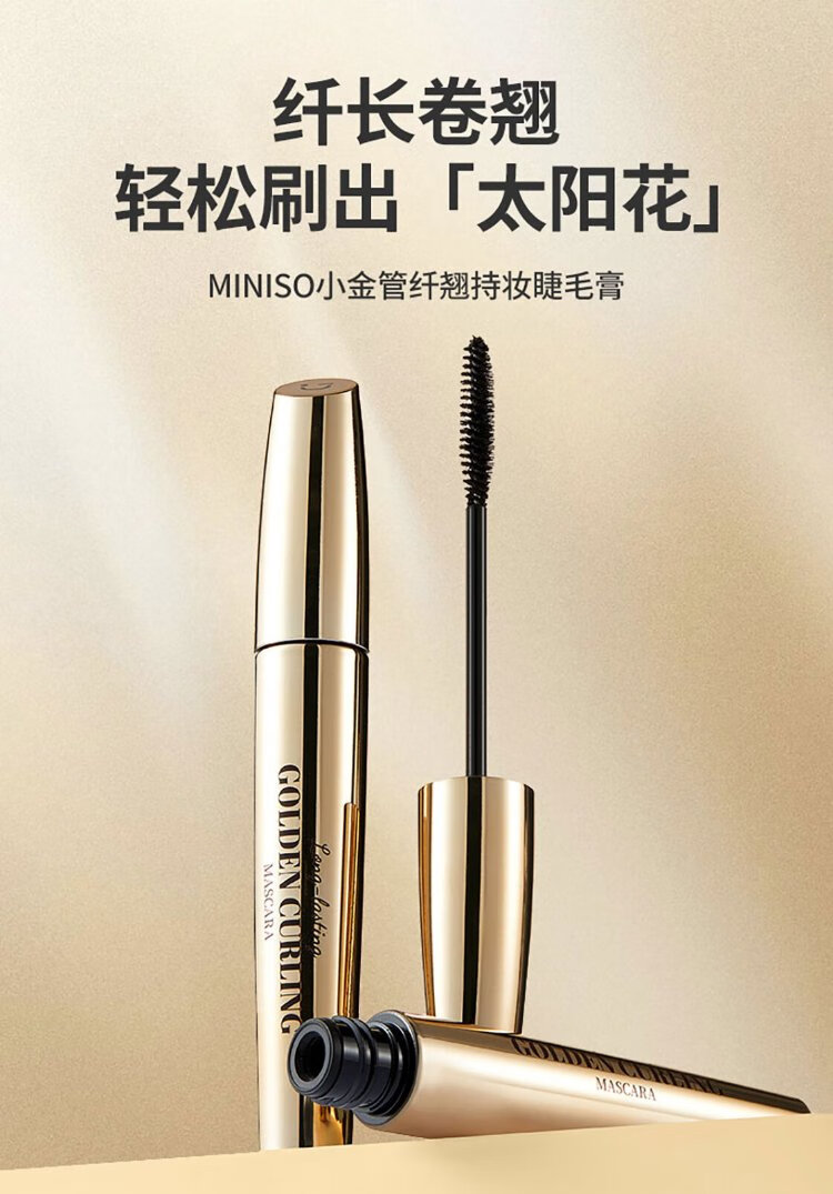 MINISO small gold tube slim and long-lasting mascara curling and shaping waterproof and sweat-proof no smudge gift for women