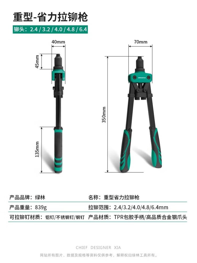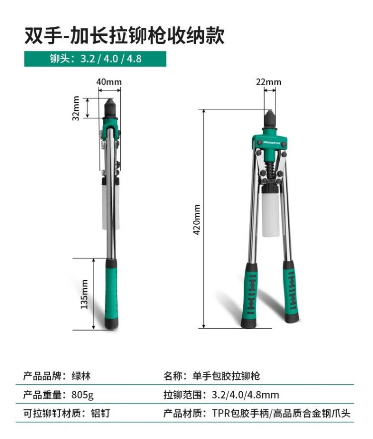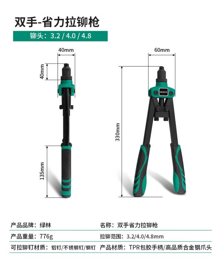 Green forest double-handle rivet gun manual labor-saving household rivet gun manual core-pulling artifact 150 rivets 1 twist drill