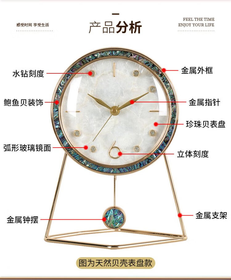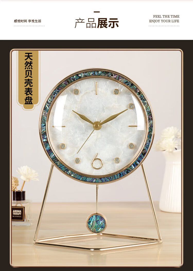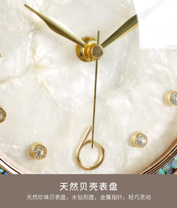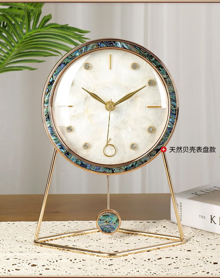 Hense creative shell clock European style desktop clock living room office light luxury quartz clock HD56 shell plate
