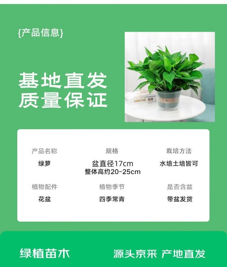 Xingxiang green radish potted hydroponic green plants for new houses, formaldehyde-removing plants, 180# gallon pots, 4 pots + water-absorbing pots, straight from the source
