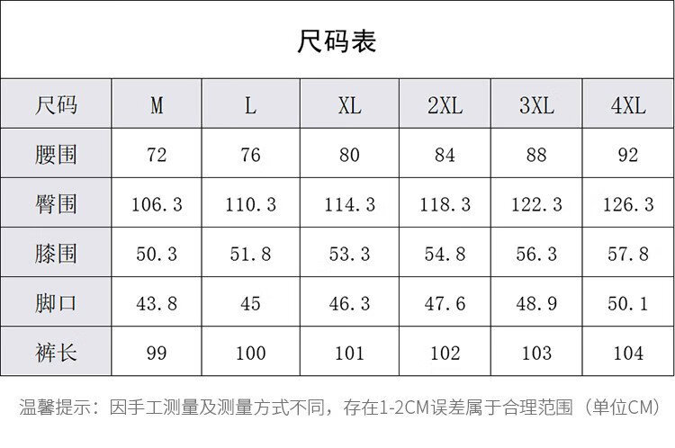 Outseam (cm) 99 cm 101.5 cm 104 cm 106.5 cm 109 cm
