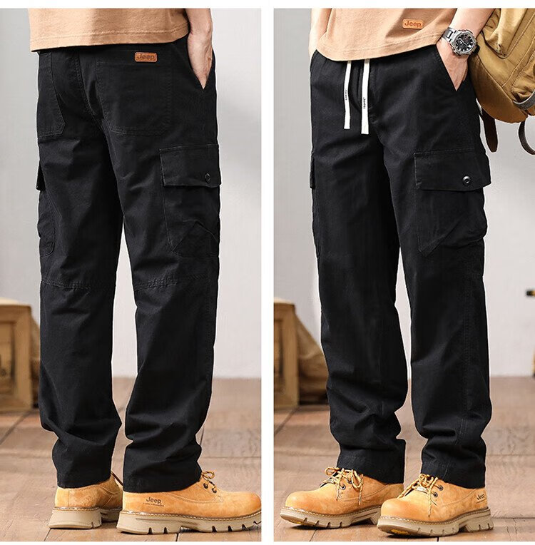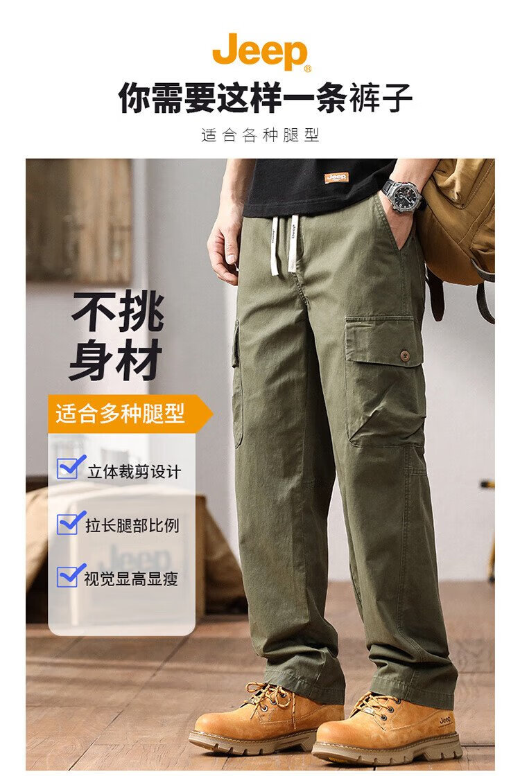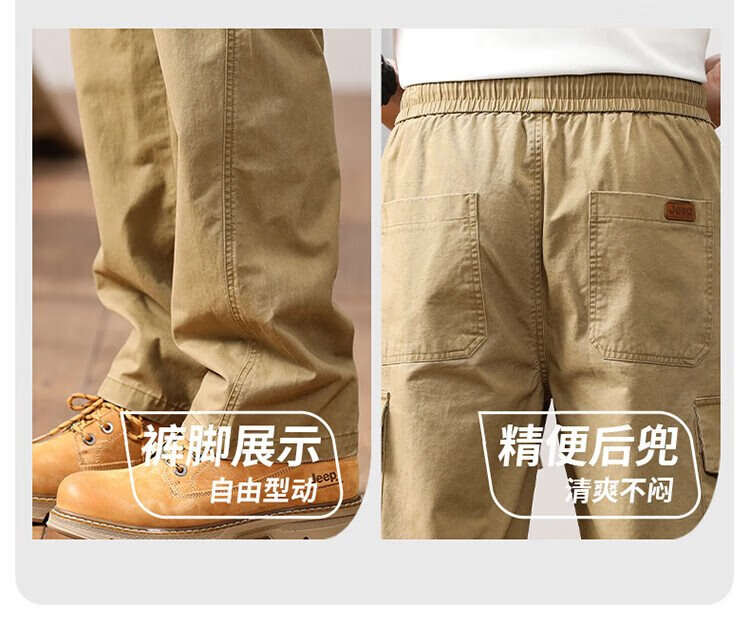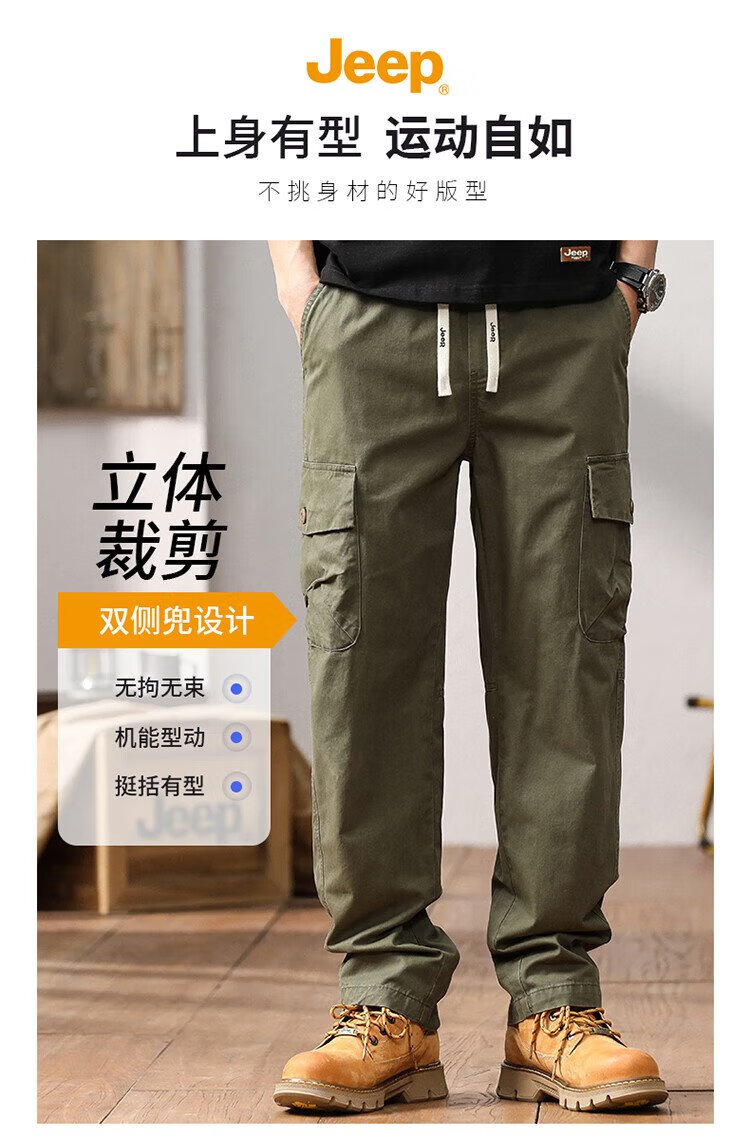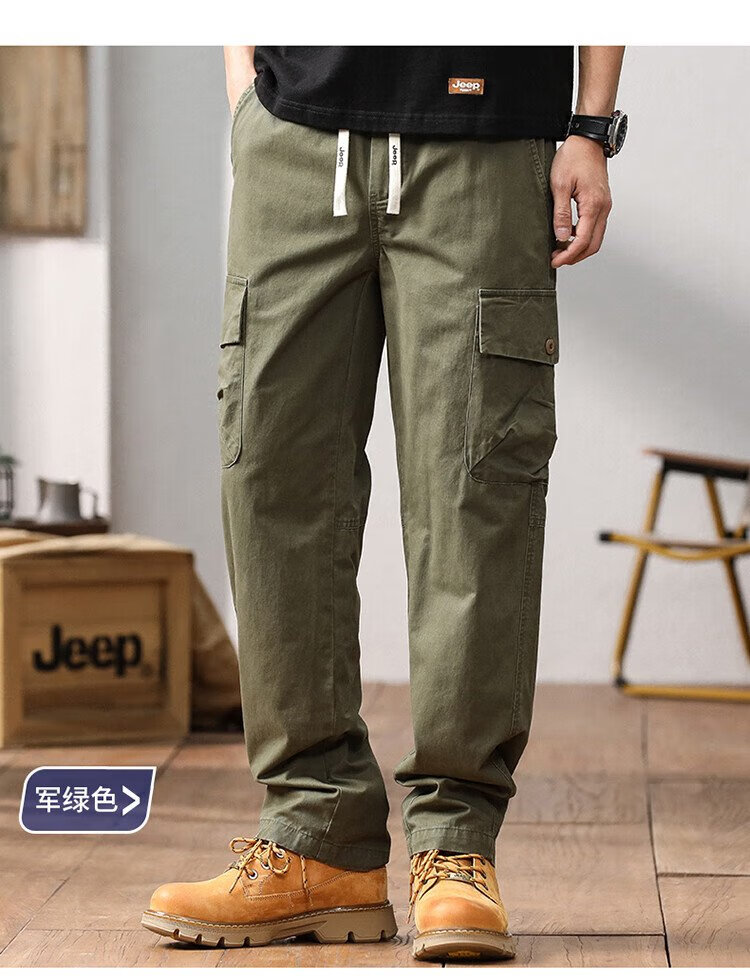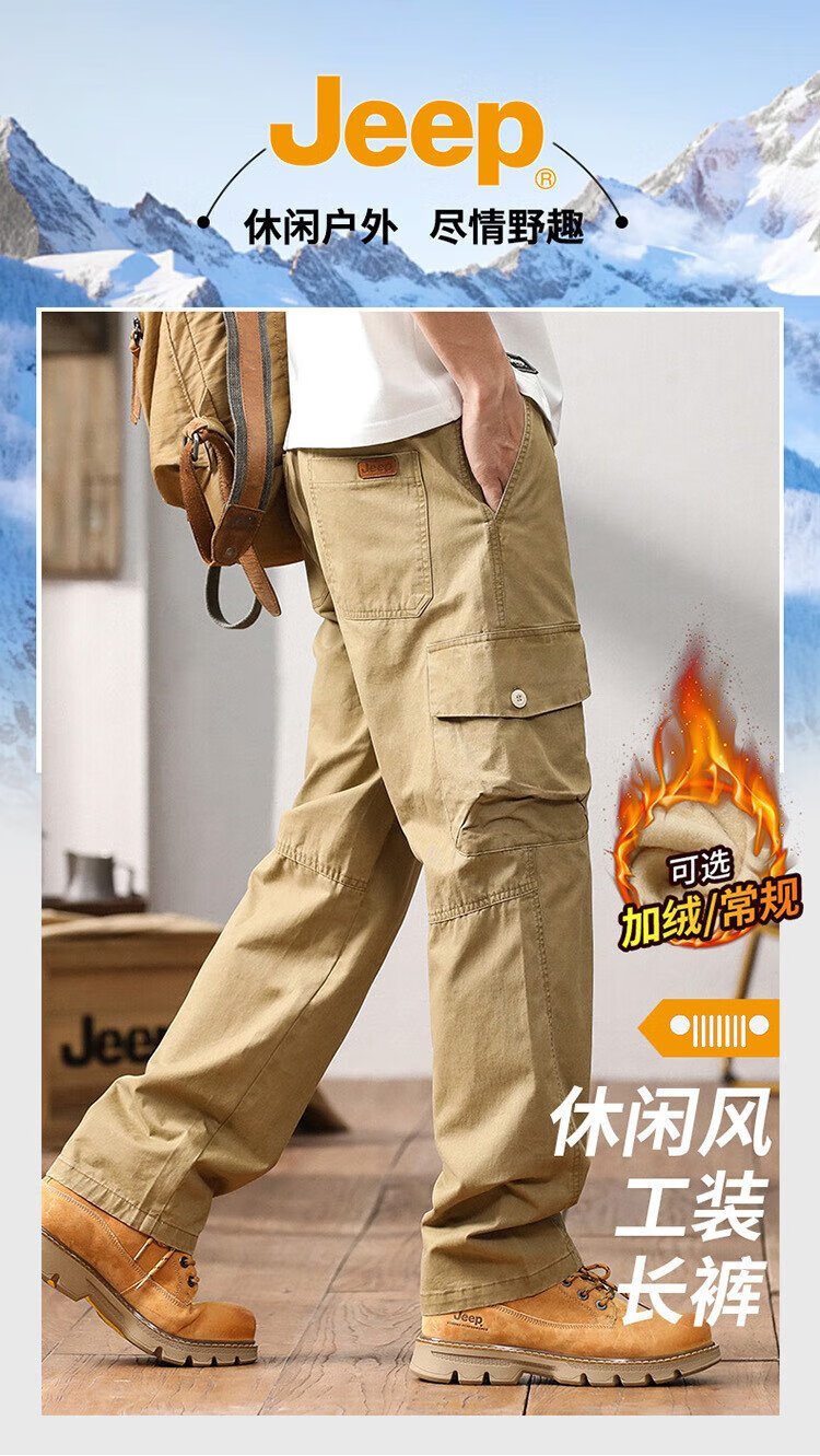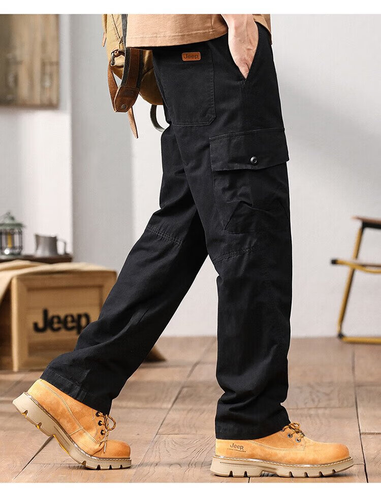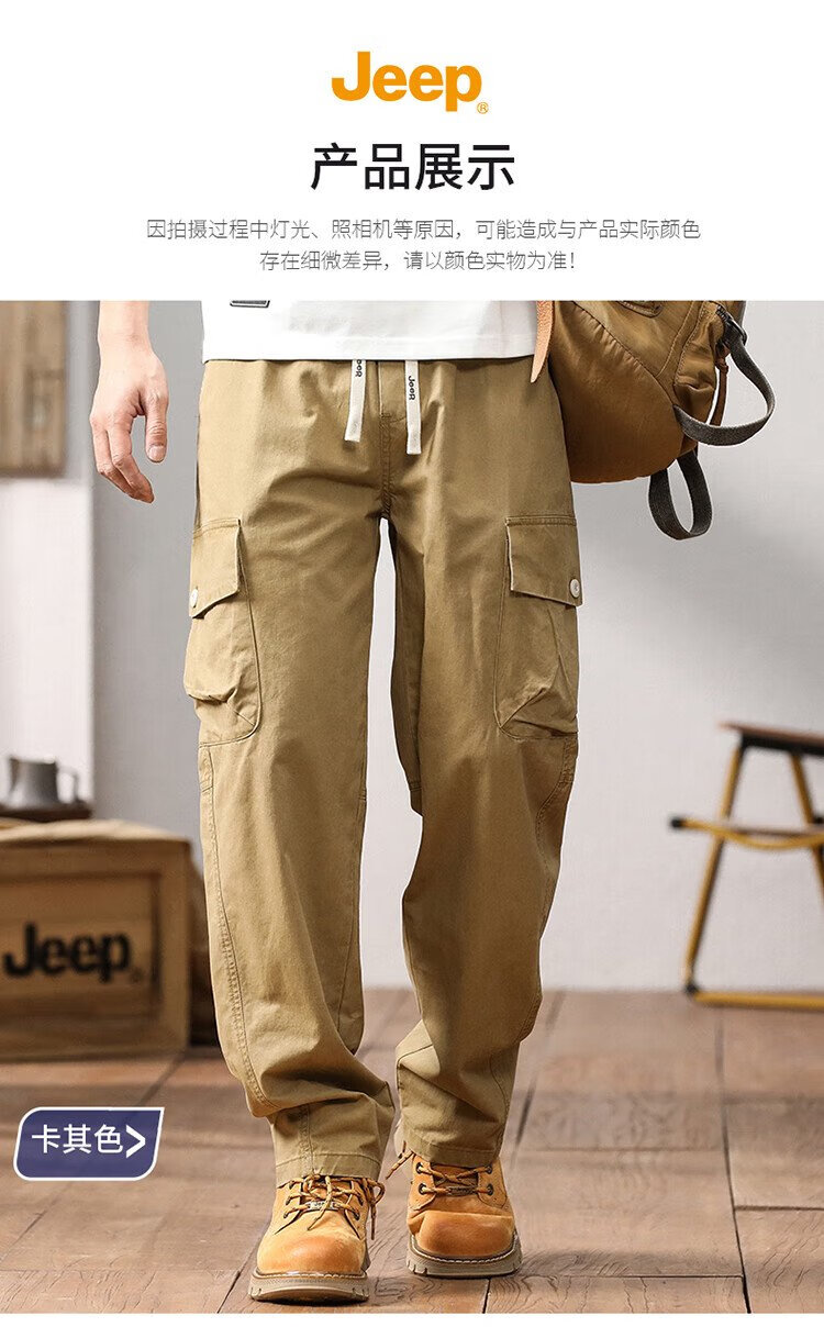 Jeep (JEEP) overalls men's autumn and winter casual pants men's loose trendy pure cotton straight-leg men's pants Khaki XL