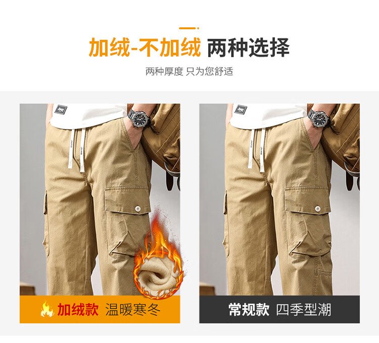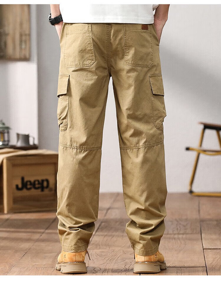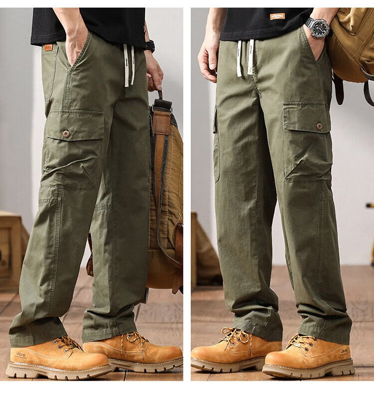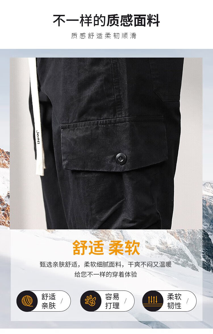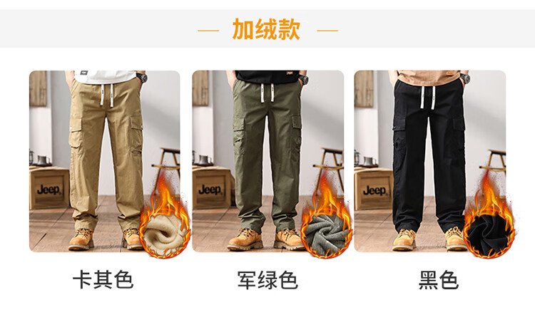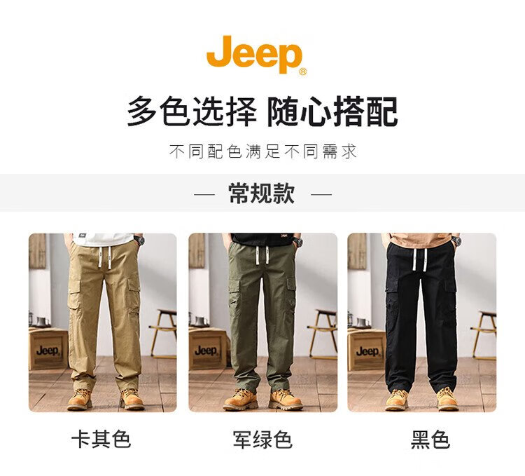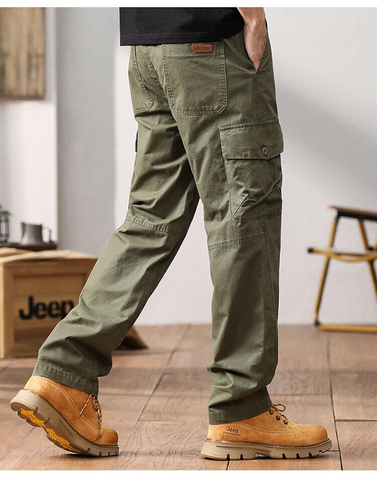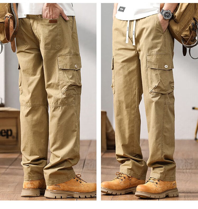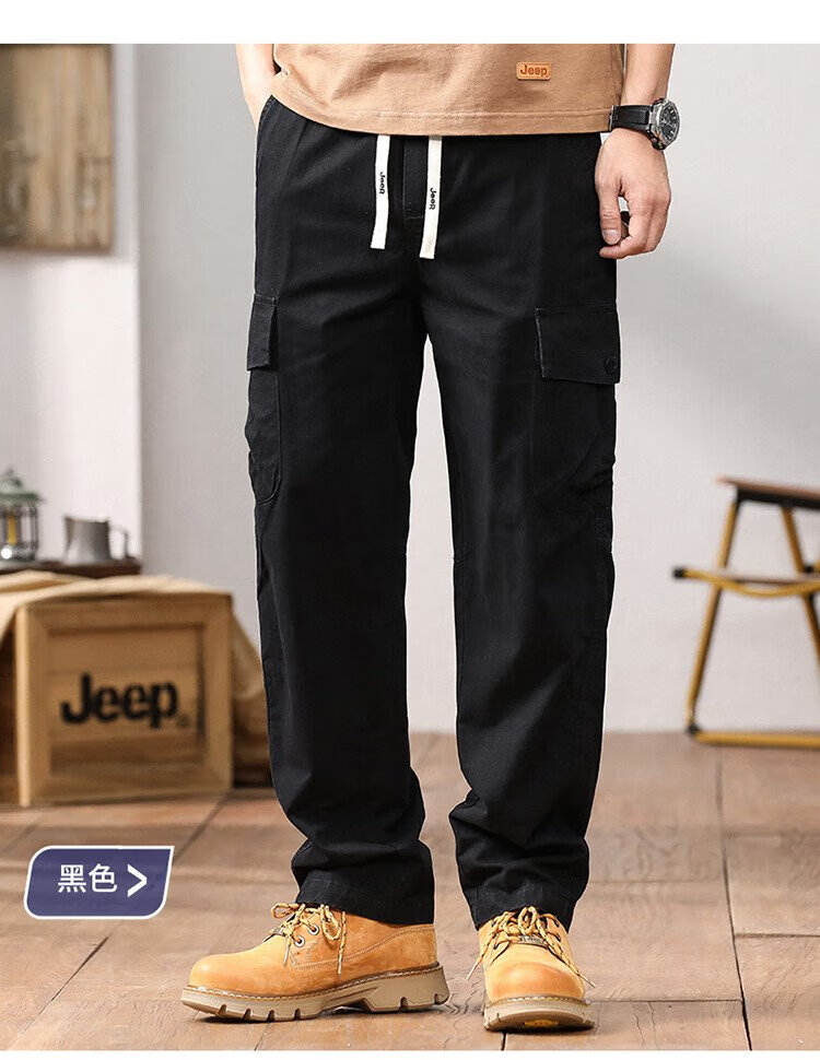 Jeep (JEEP) overalls men's autumn and winter casual pants men's loose trendy pure cotton straight-leg men's pants Khaki XL