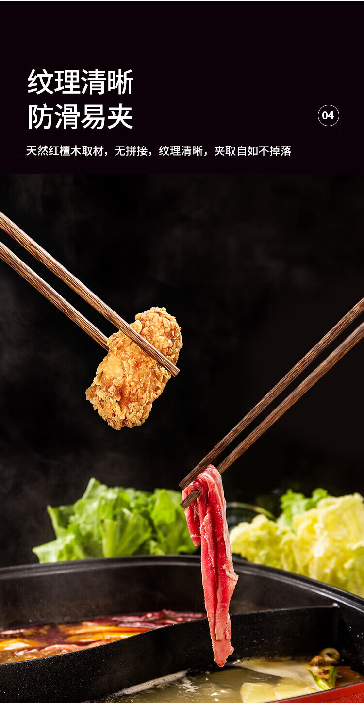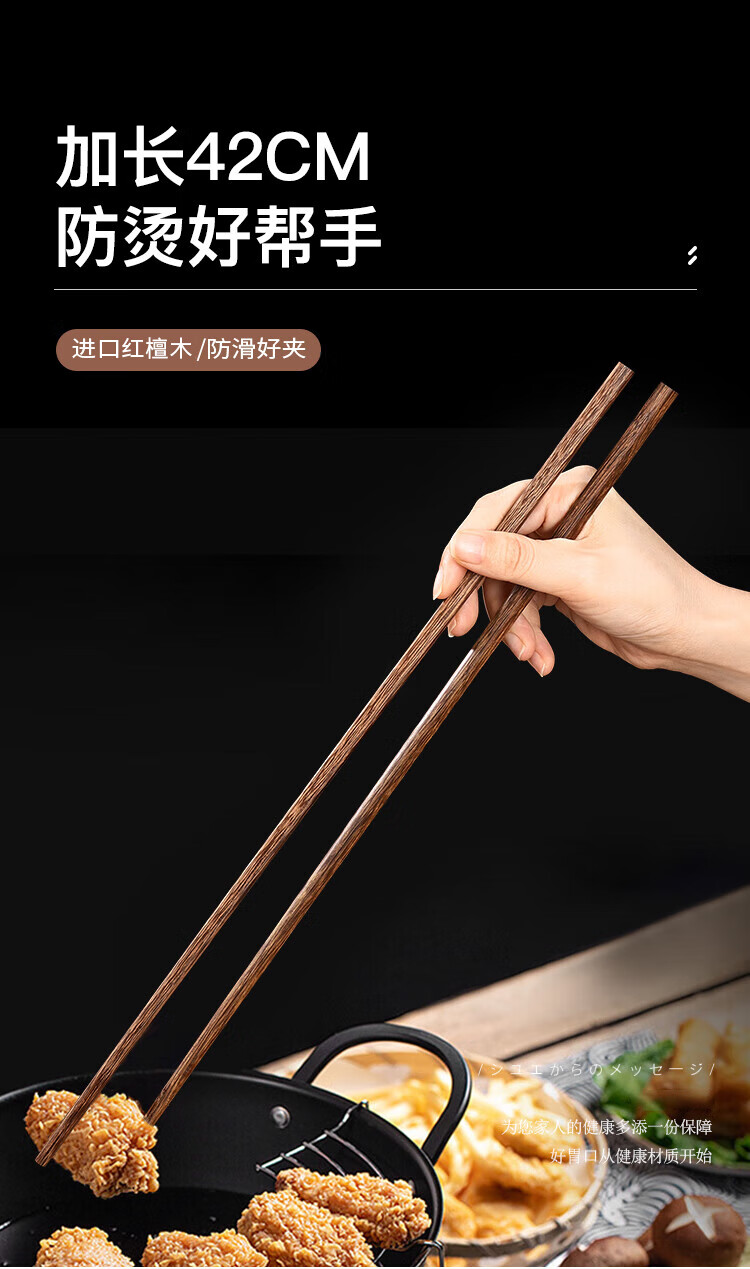 京冇长筷子油炸耐高温42cm红檀木火锅筷加长筷煎炸捞面木筷子抗菌防霉