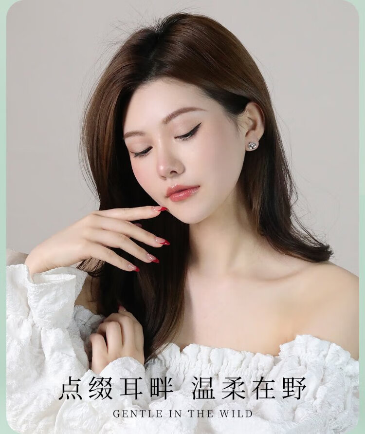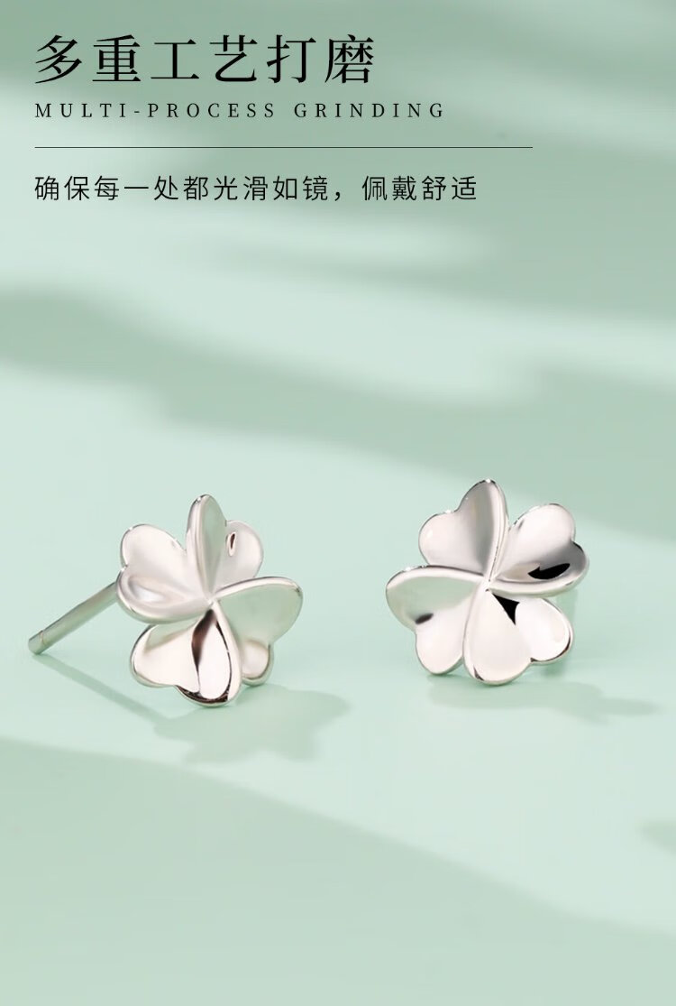 Old silversmith s925 silver four-leaf clover silver earrings for ear piercing, no need to pick when sleeping, silver Valentine's Day gift, simple and fashionable silver earrings for women
