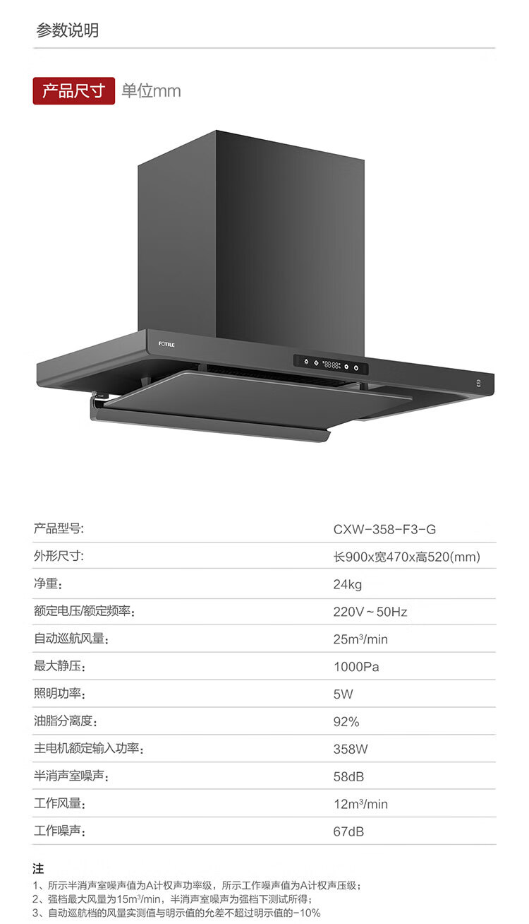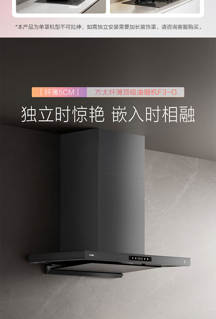 FOTILE F3-G slim European top suction 25 air volume cigarette stove linkage. Officially recommended with 02-TE21 set. 20% national subsidy for domestic trade-in of range hood.