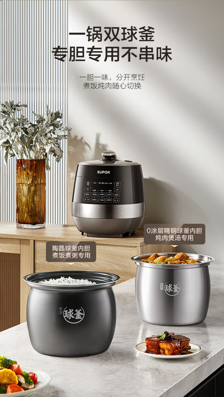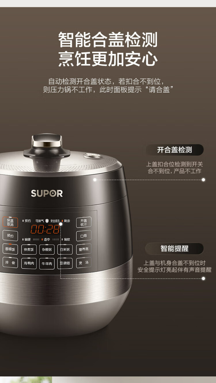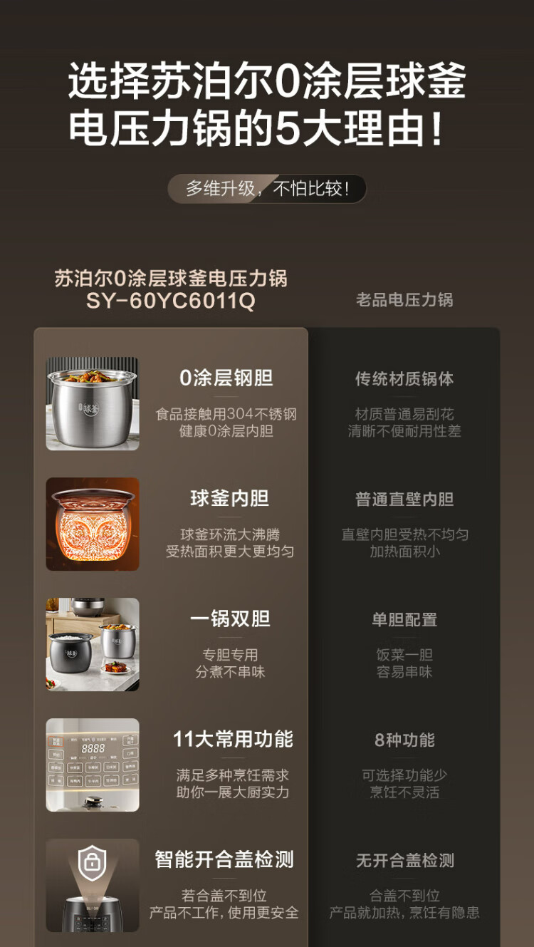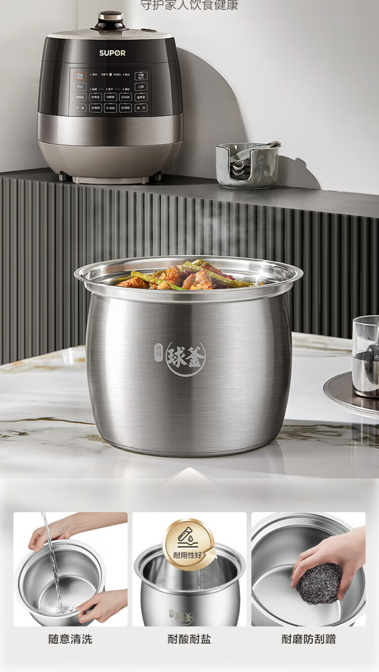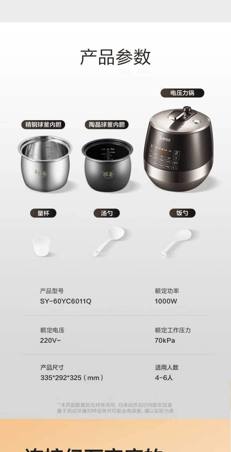 SUPOR 0-coated spherical kettle electric pressure cooker 6L double-gallon fully automatic smart reservation household SY-60YC6011Q rice cooker pressure cooker for 6-8 people