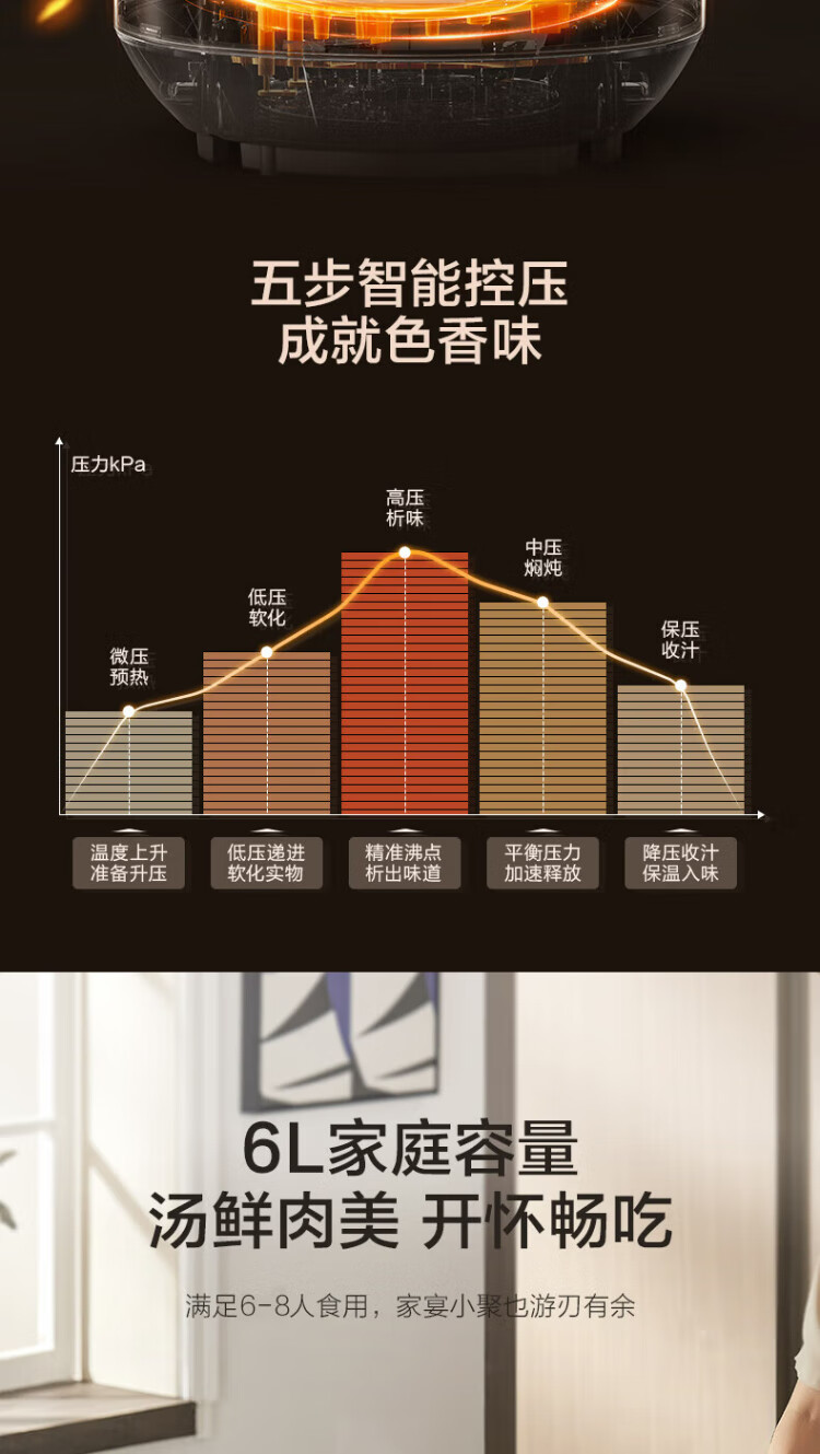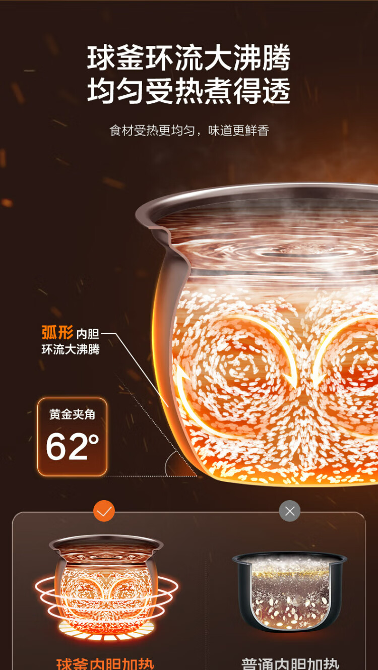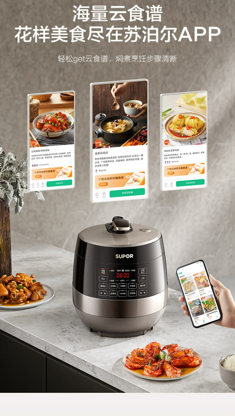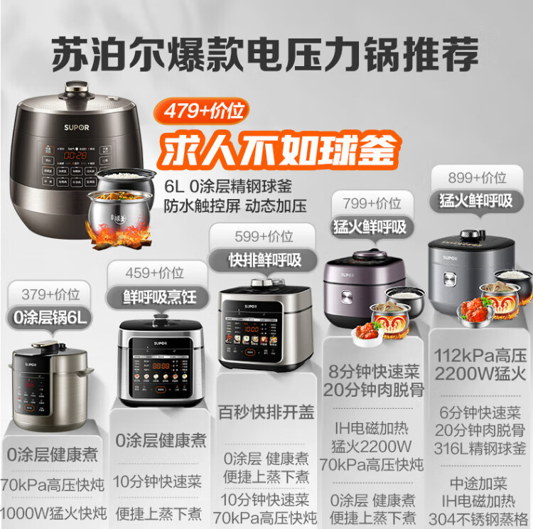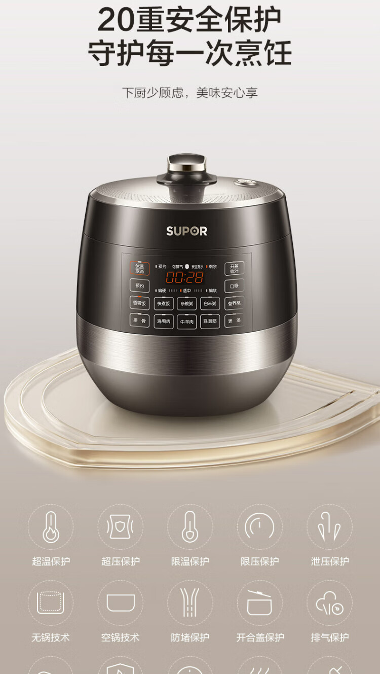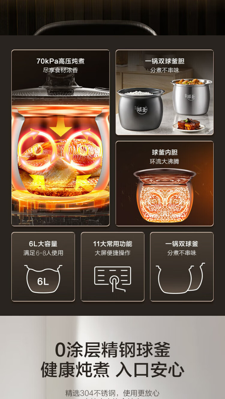 SUPOR 0-coated spherical kettle electric pressure cooker 6L double-gallon fully automatic smart reservation household SY-60YC6011Q rice cooker pressure cooker for 6-8 people