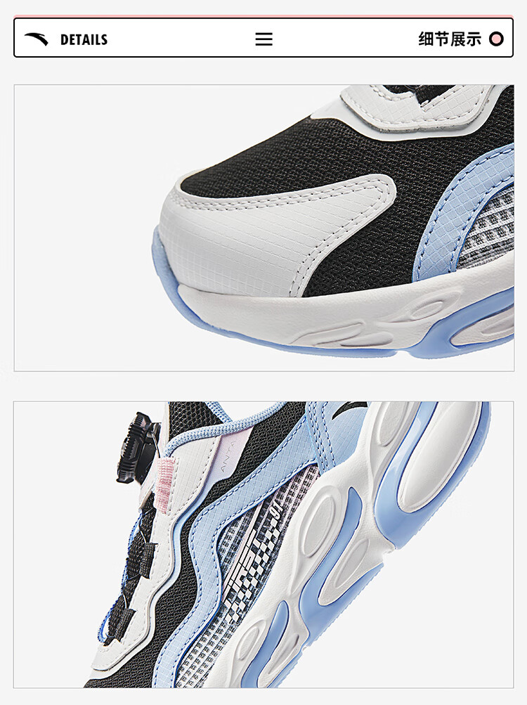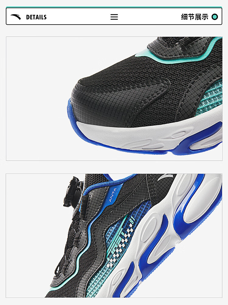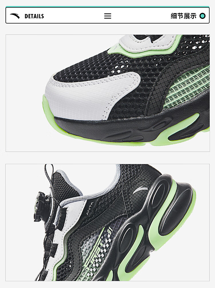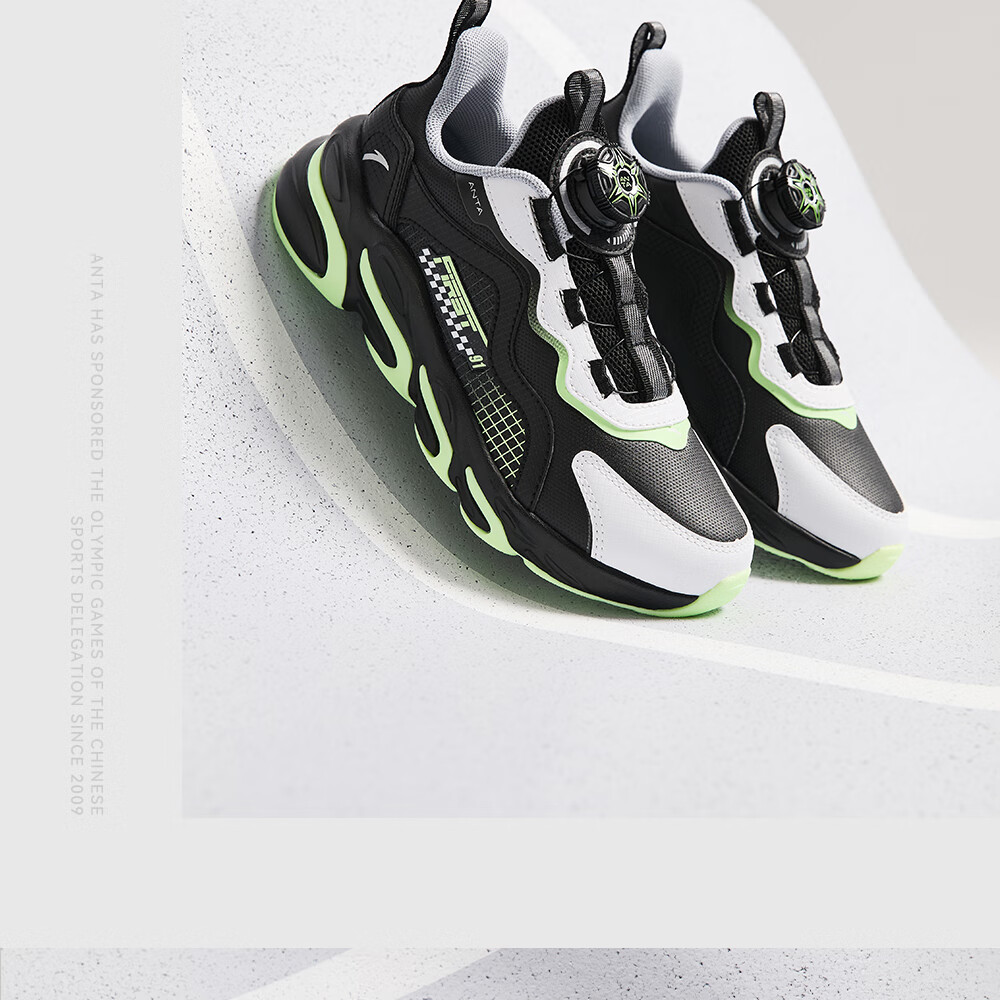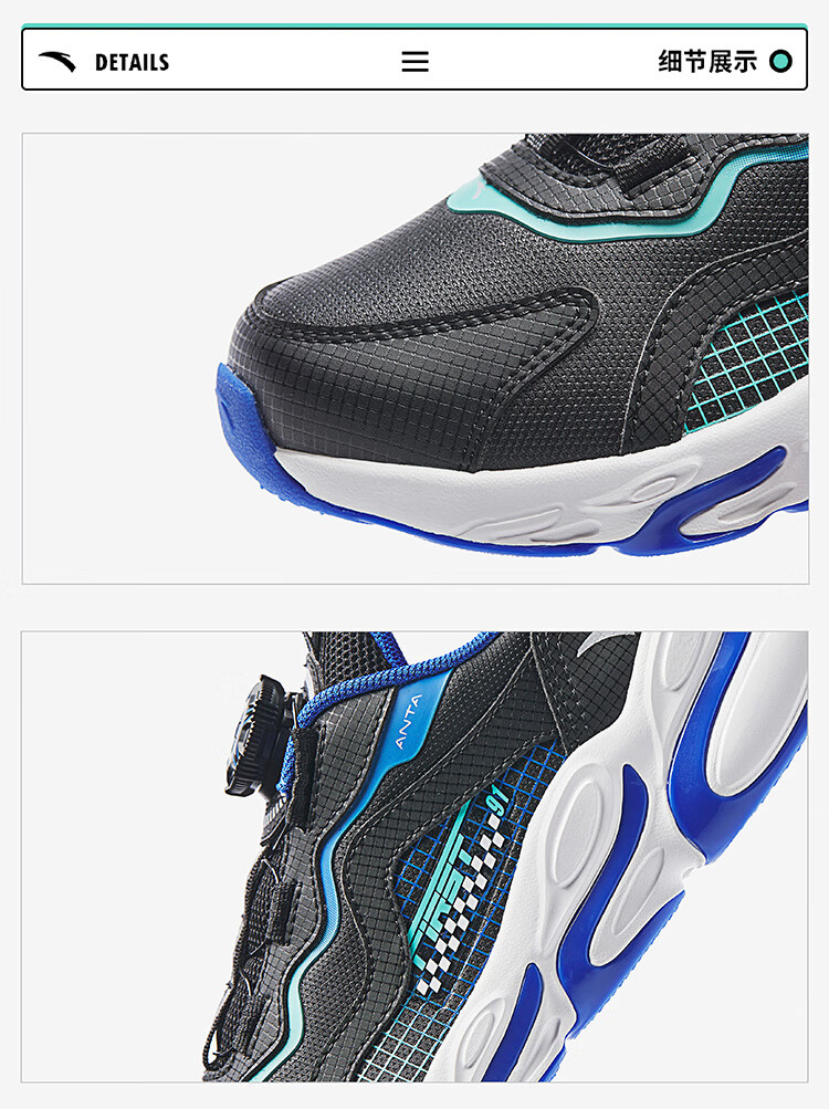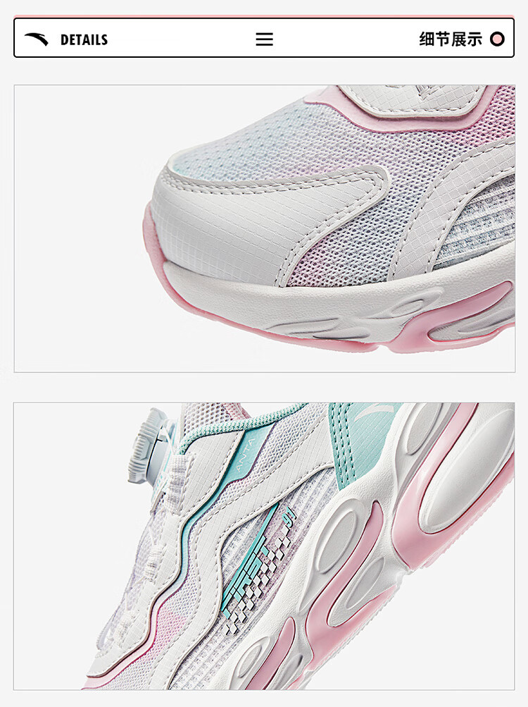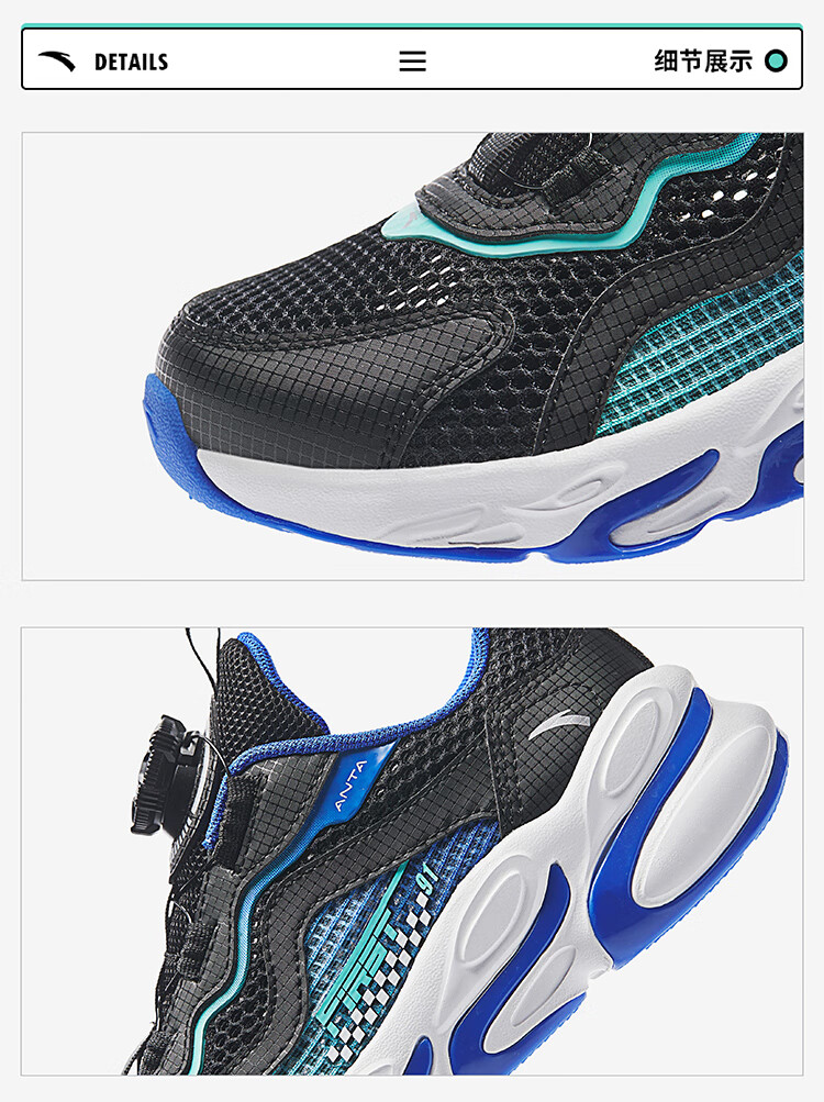 ANTA children's running shoes for boys and girls autumn fine mesh elastic sports button mesh breathable running shoes A12435523