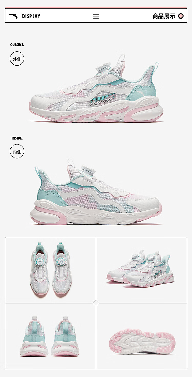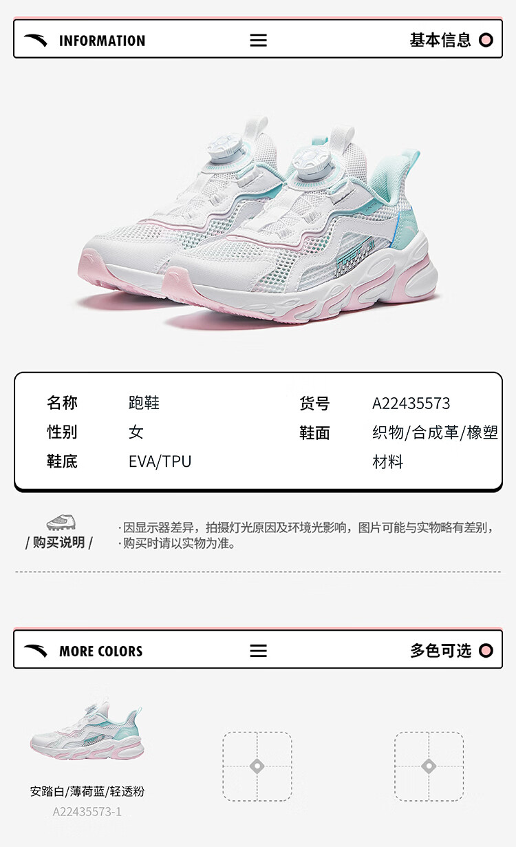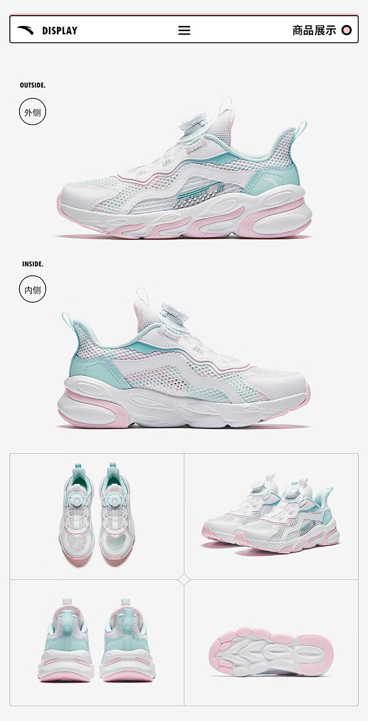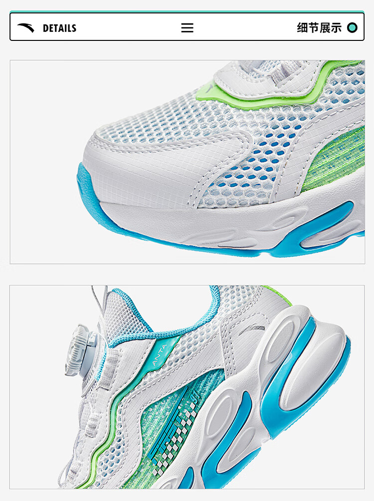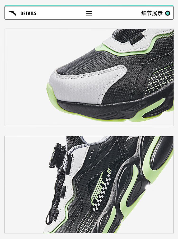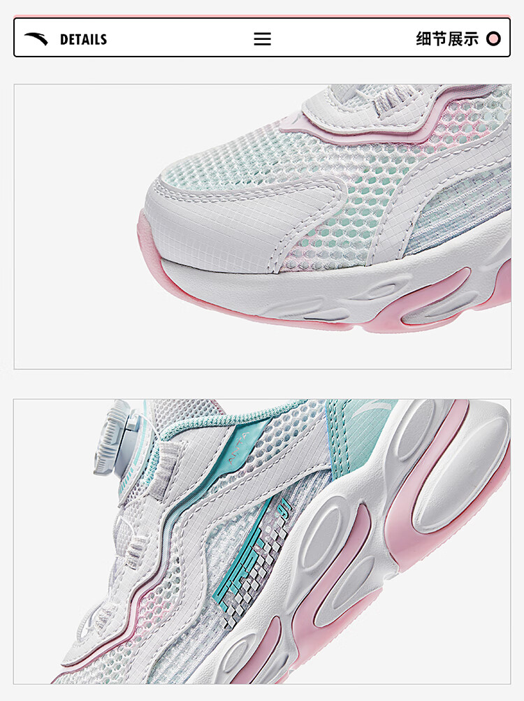 ANTA children's running shoes for boys and girls autumn fine mesh elastic sports button mesh breathable running shoes A12435523