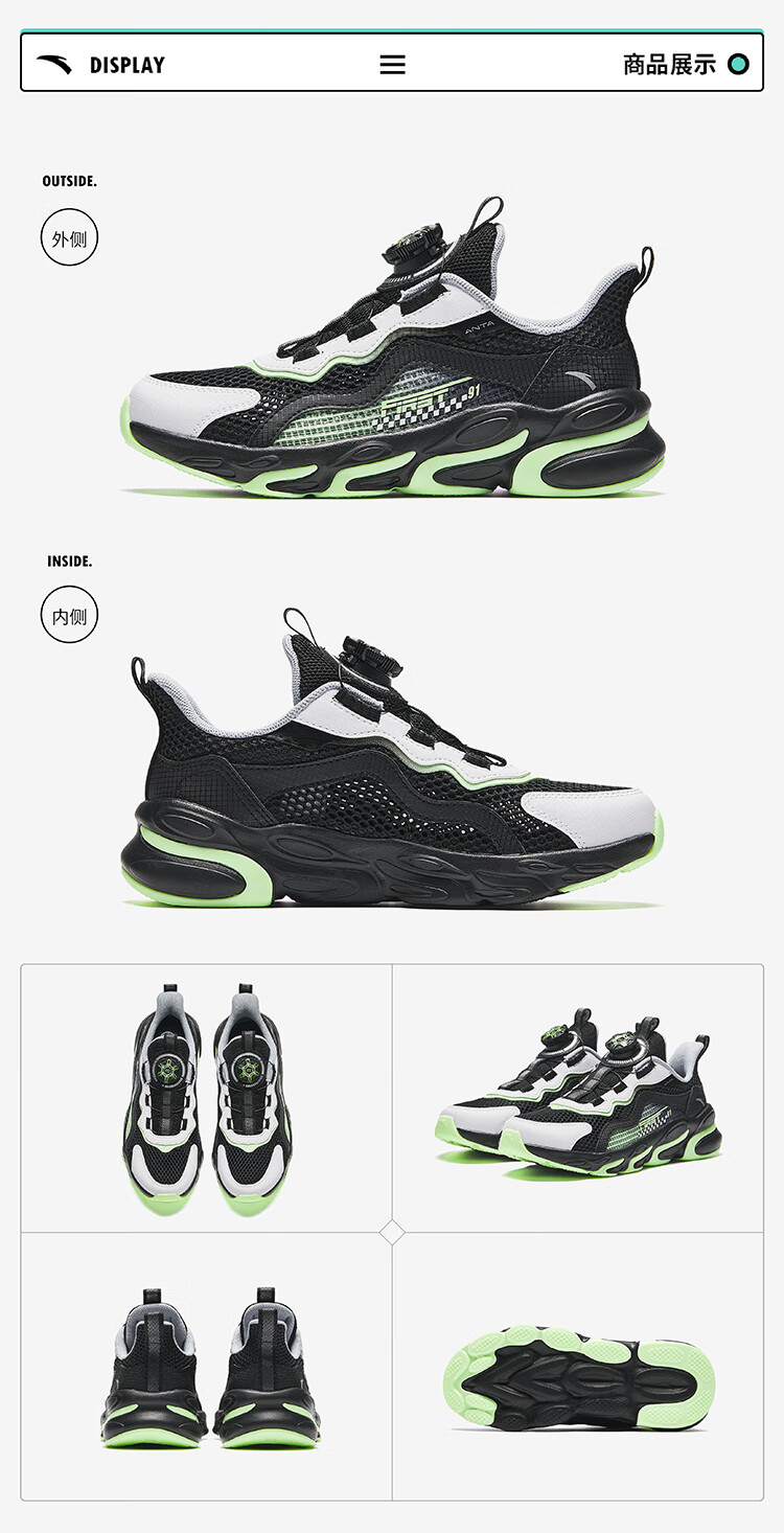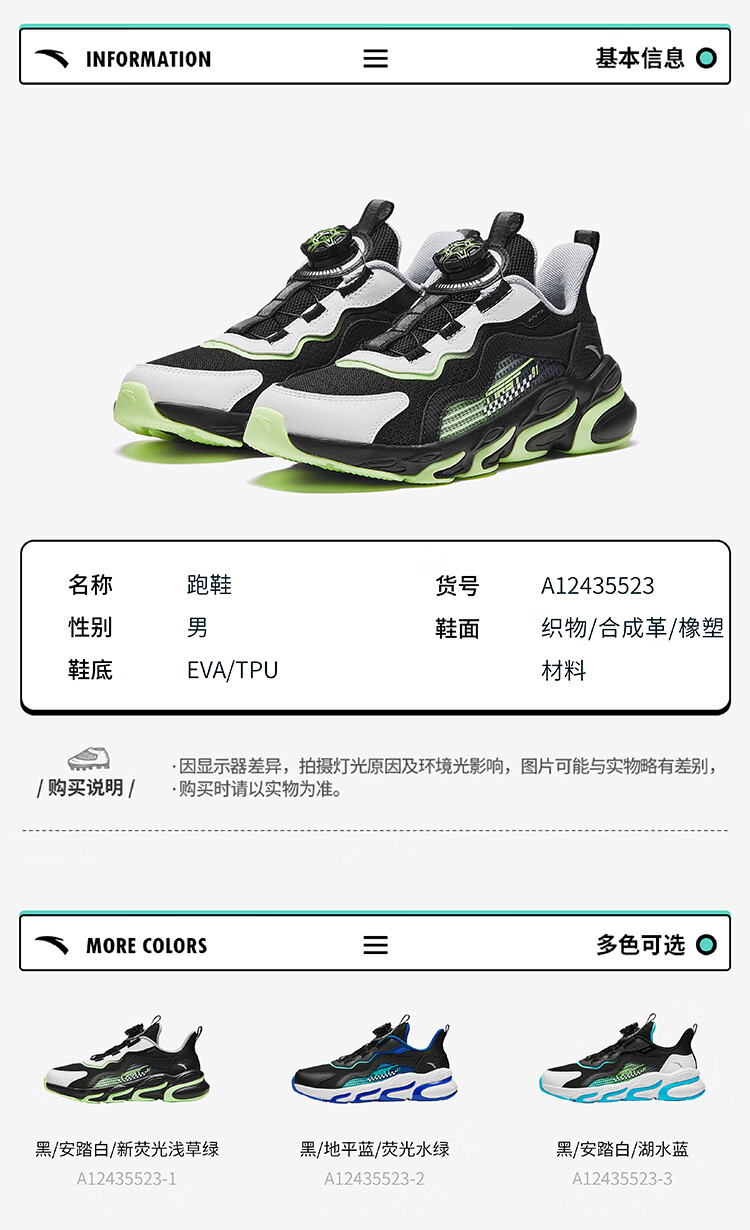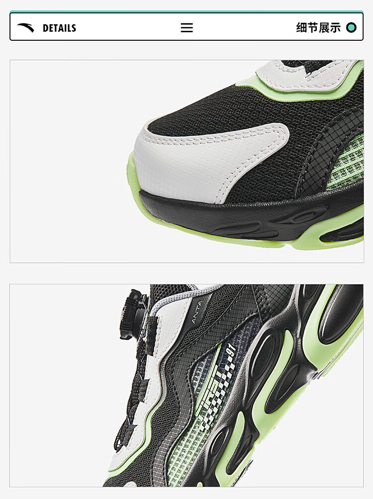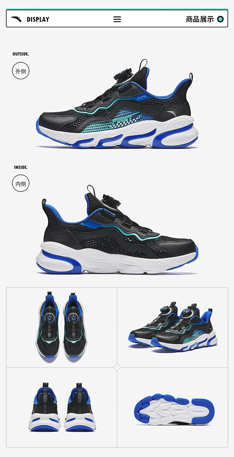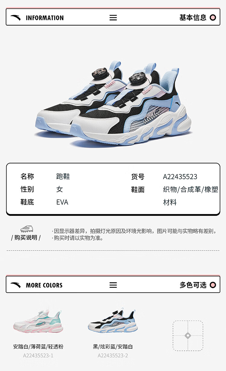 ANTA children's running shoes for boys and girls autumn fine mesh elastic sports button mesh breathable running shoes A12435523