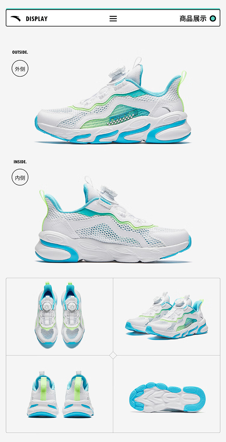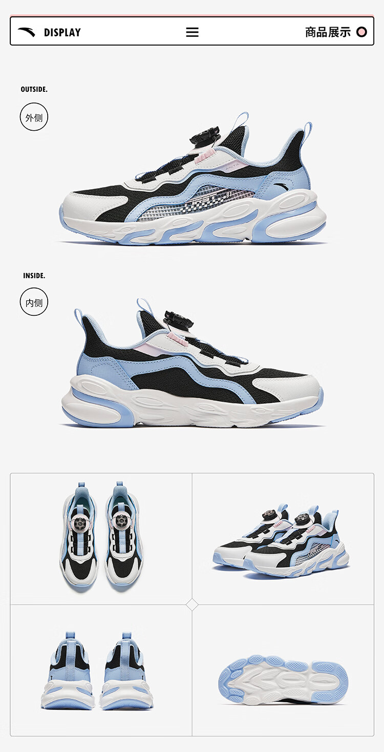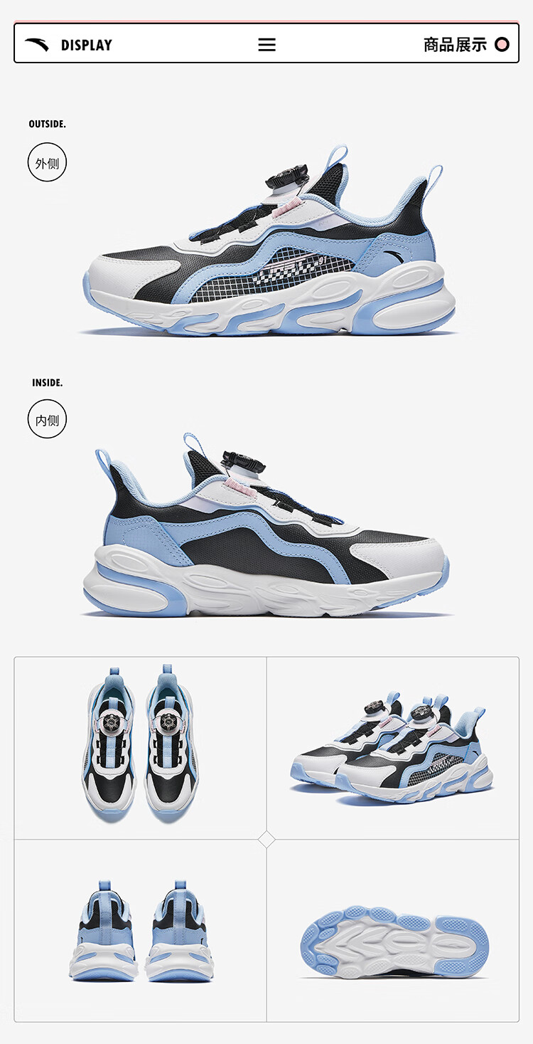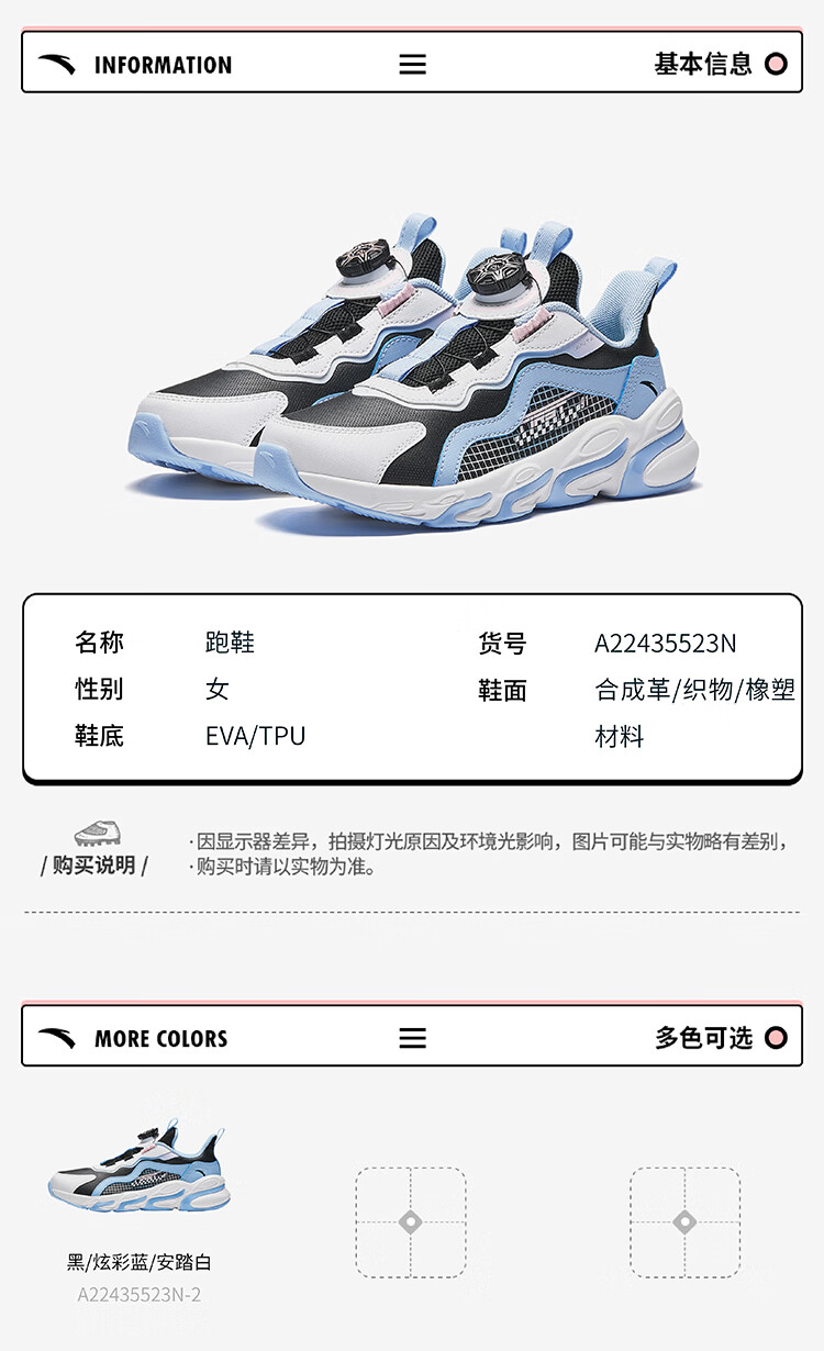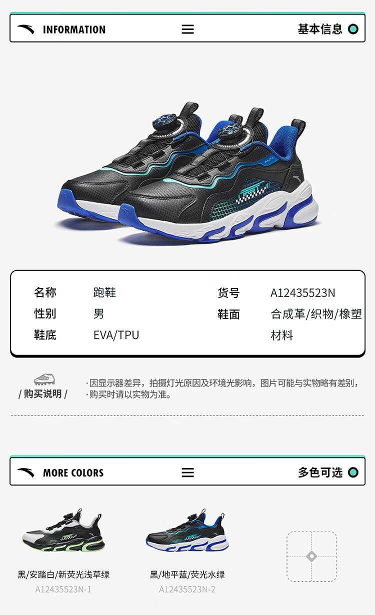 ANTA children's running shoes for boys and girls autumn fine mesh elastic sports button mesh breathable running shoes A12435523