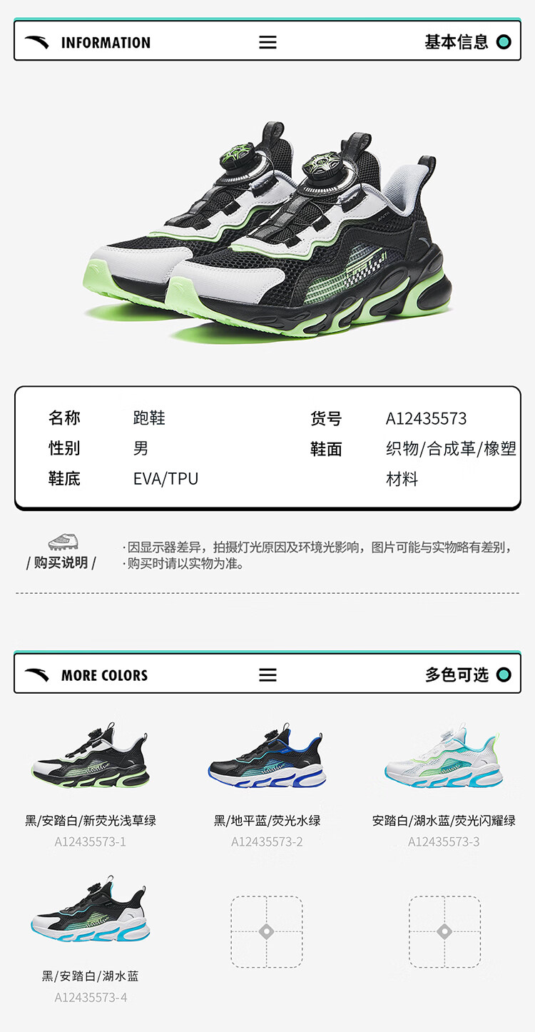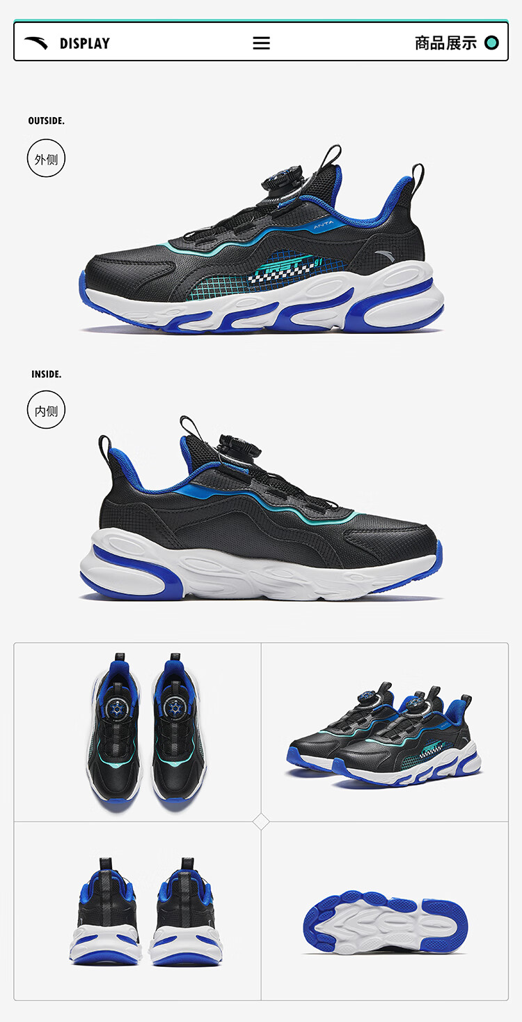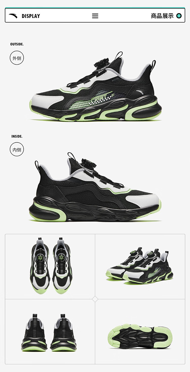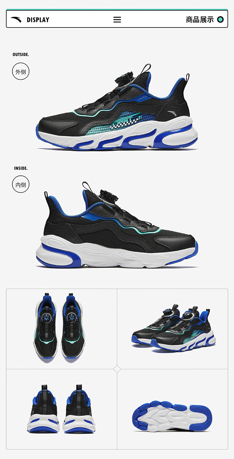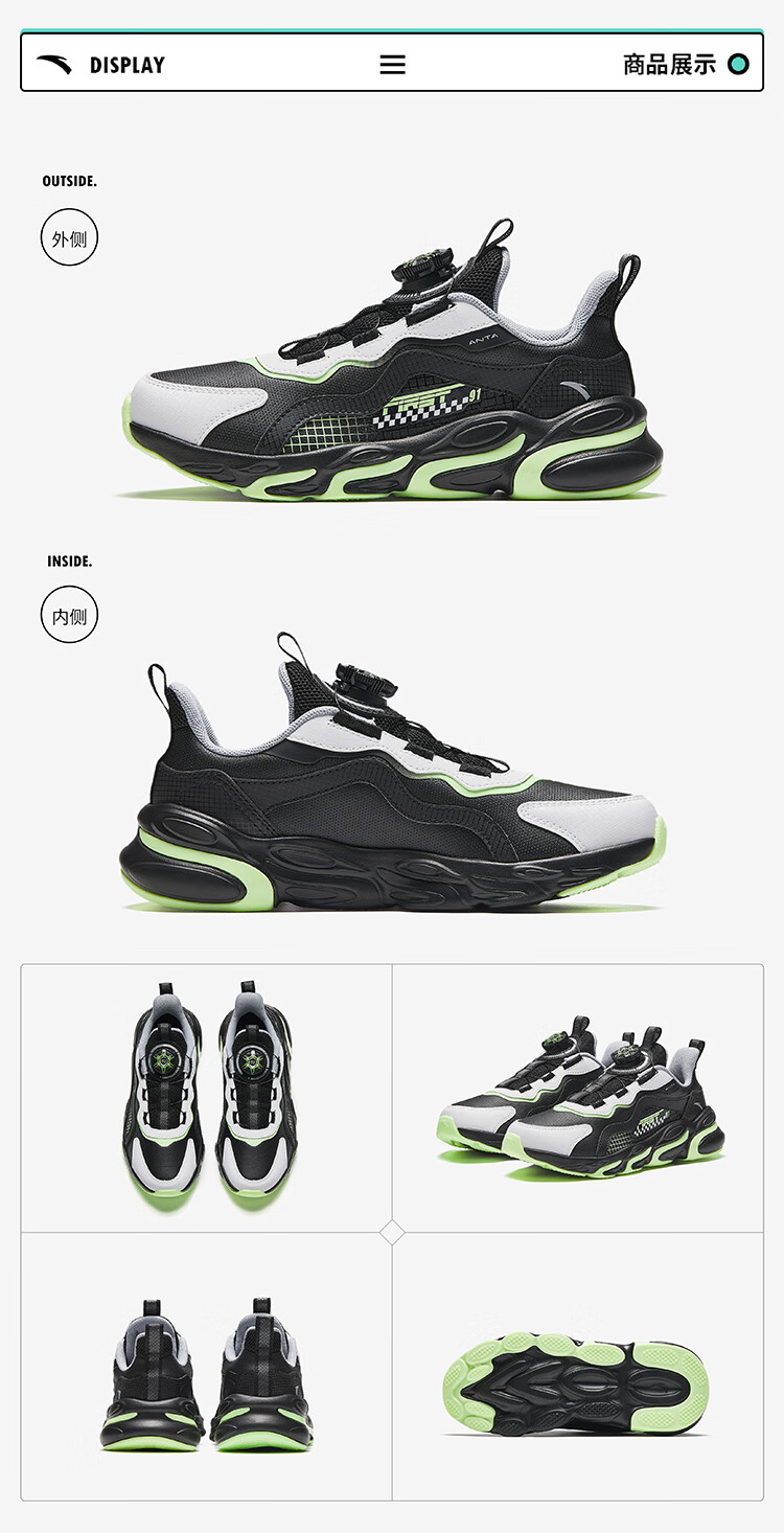 ANTA children's running shoes for boys and girls autumn fine mesh elastic sports button mesh breathable running shoes A12435523