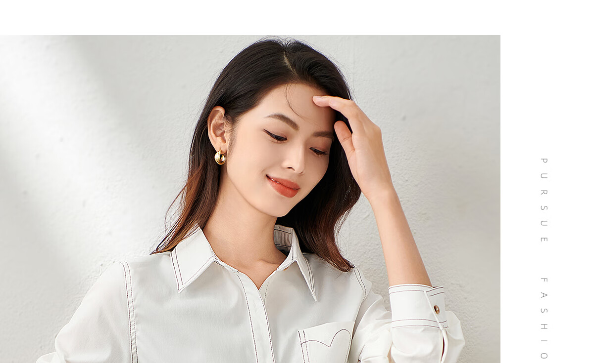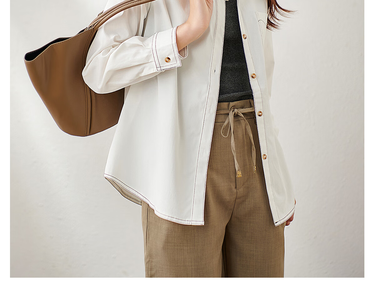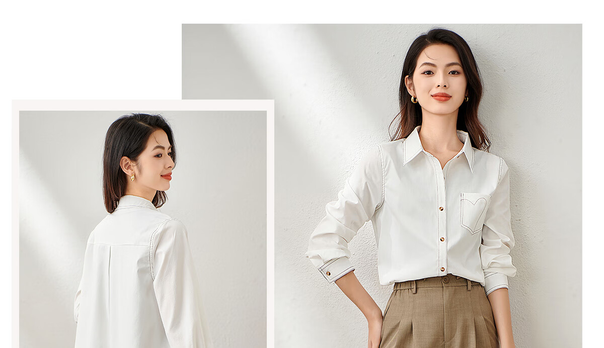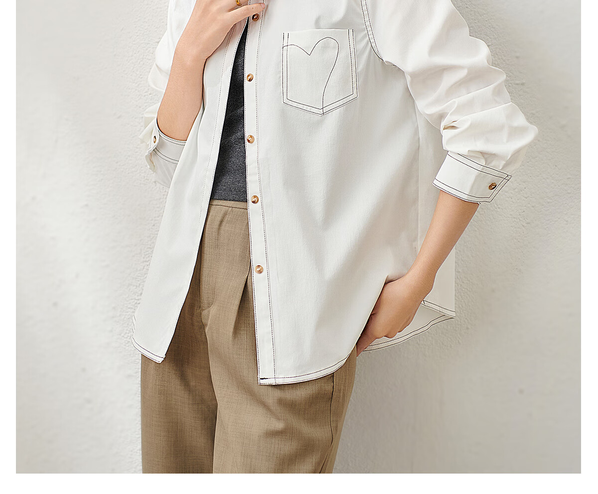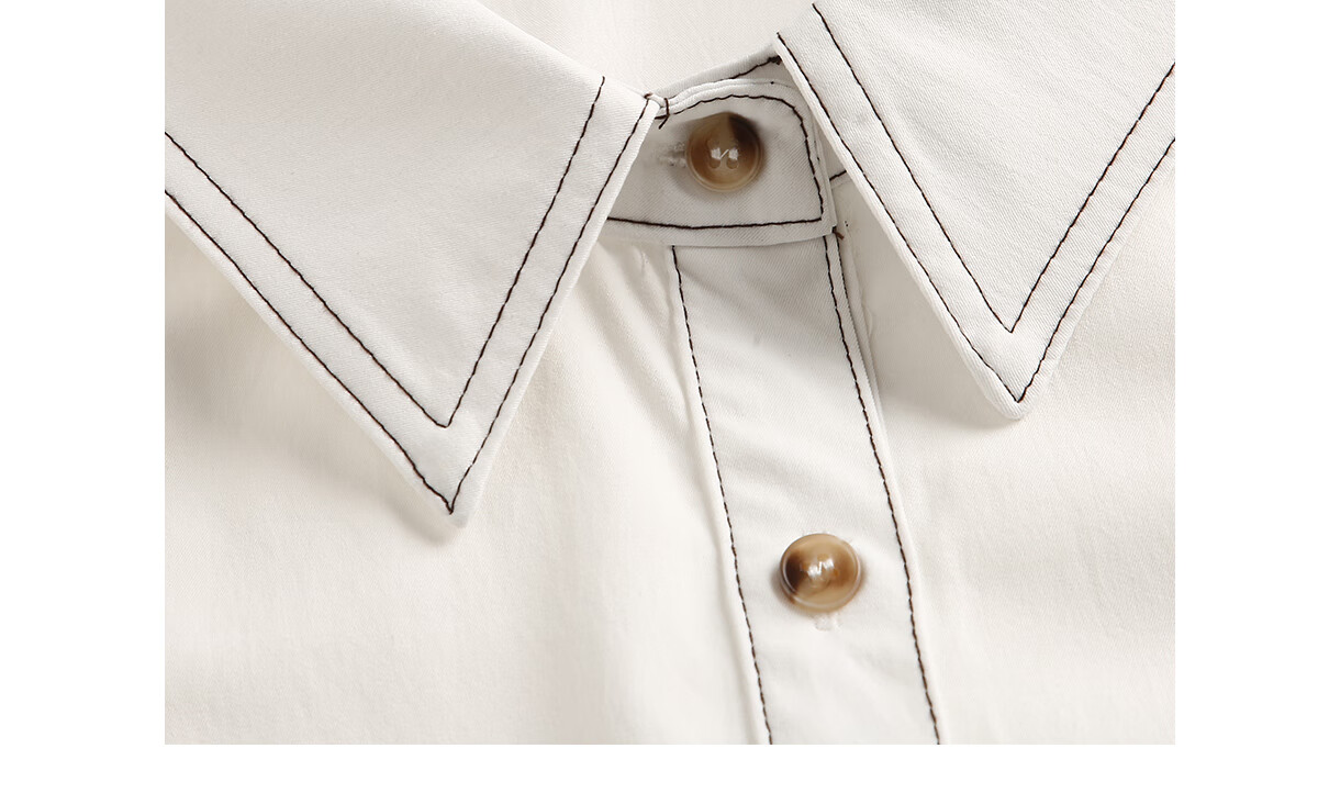 Chu Shen Primavera y otoño Camisa de manga larga Mujer Contraste Color Topstitch Diseño Nicho Casual Desplazamientos Camisa blanca Top S143C2019