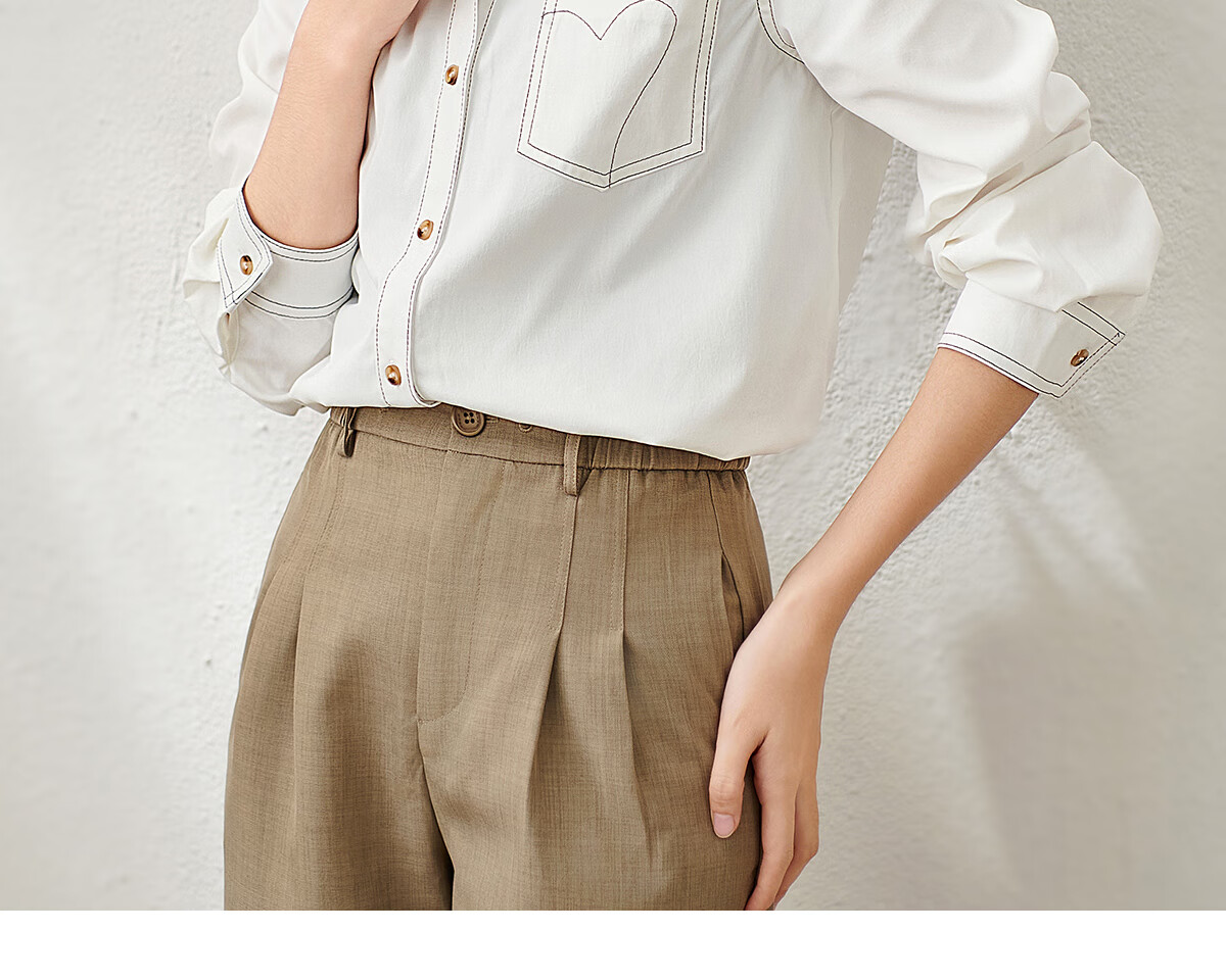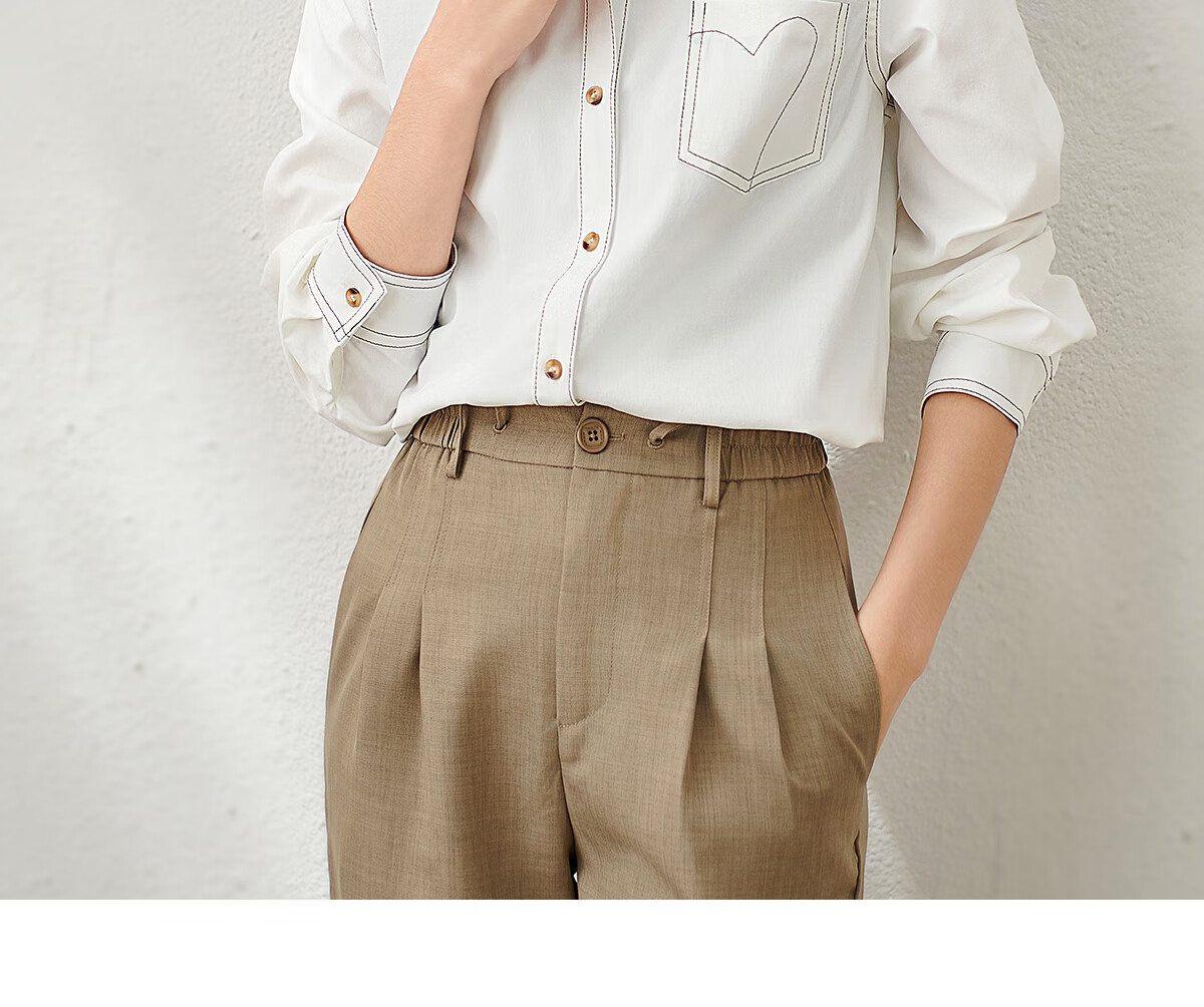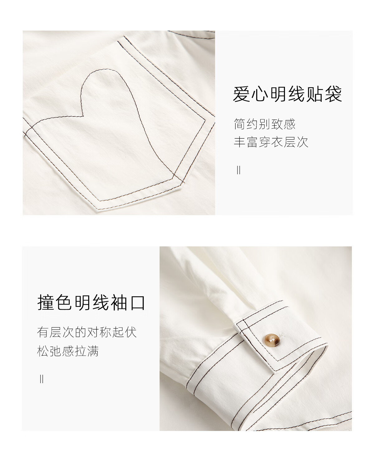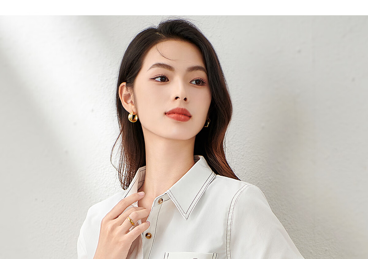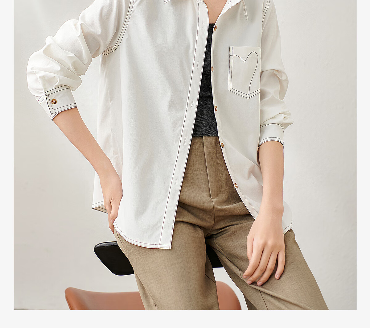 Chu Shen Primavera y otoño Camisa de manga larga Mujer Contraste Color Topstitch Diseño Nicho Casual Desplazamientos Camisa blanca Top S143C2019