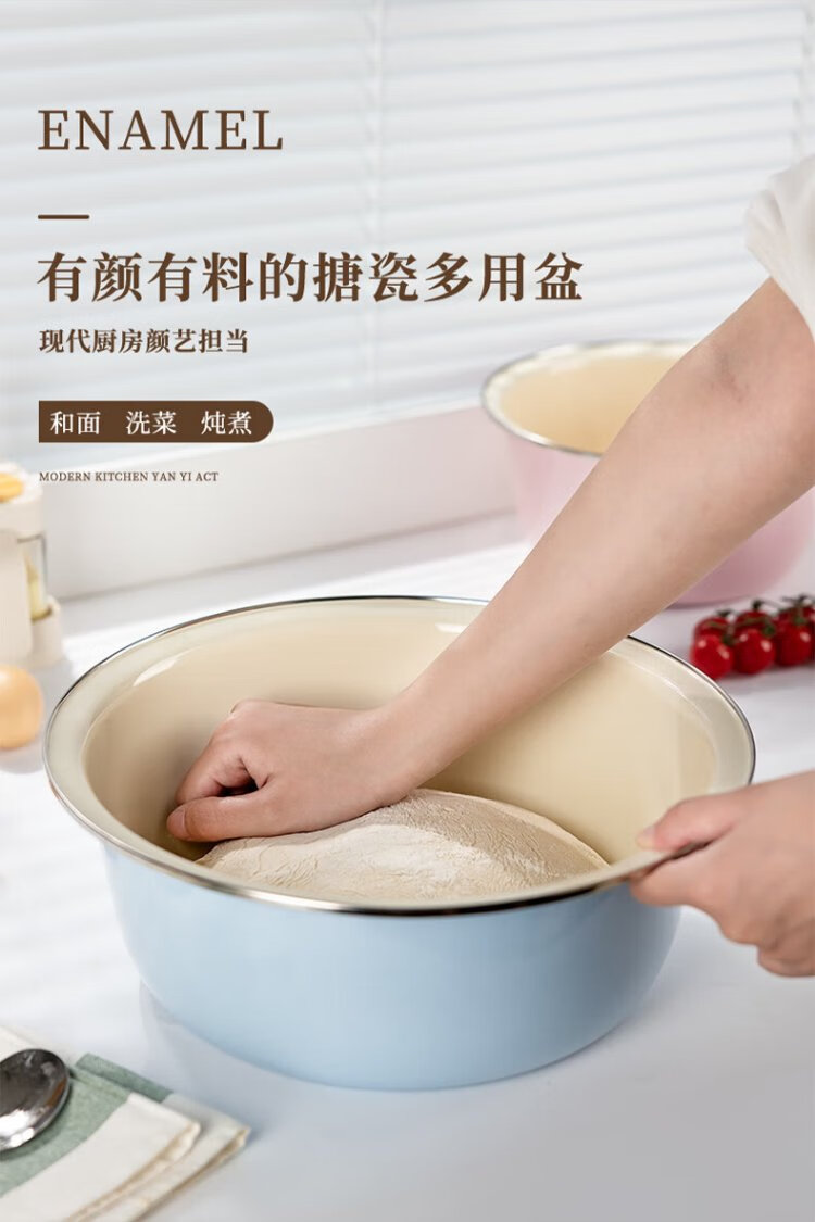 Newair enamel enamel basin old-fashioned and basin home cooking kitchen washing vegetables kneading dough non-stick proofing noodle large porcelain basin