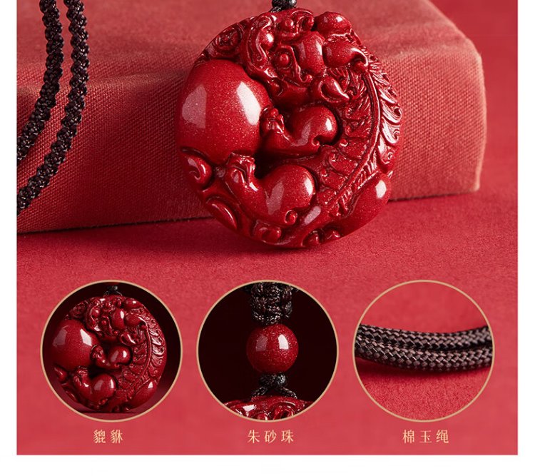 Ciling Pavilion Cinnabar Pixiu Pendant Men's Year Purple Gold Sand Portable Amulet Pendant Men's and Women's Necklace Birthday Gift