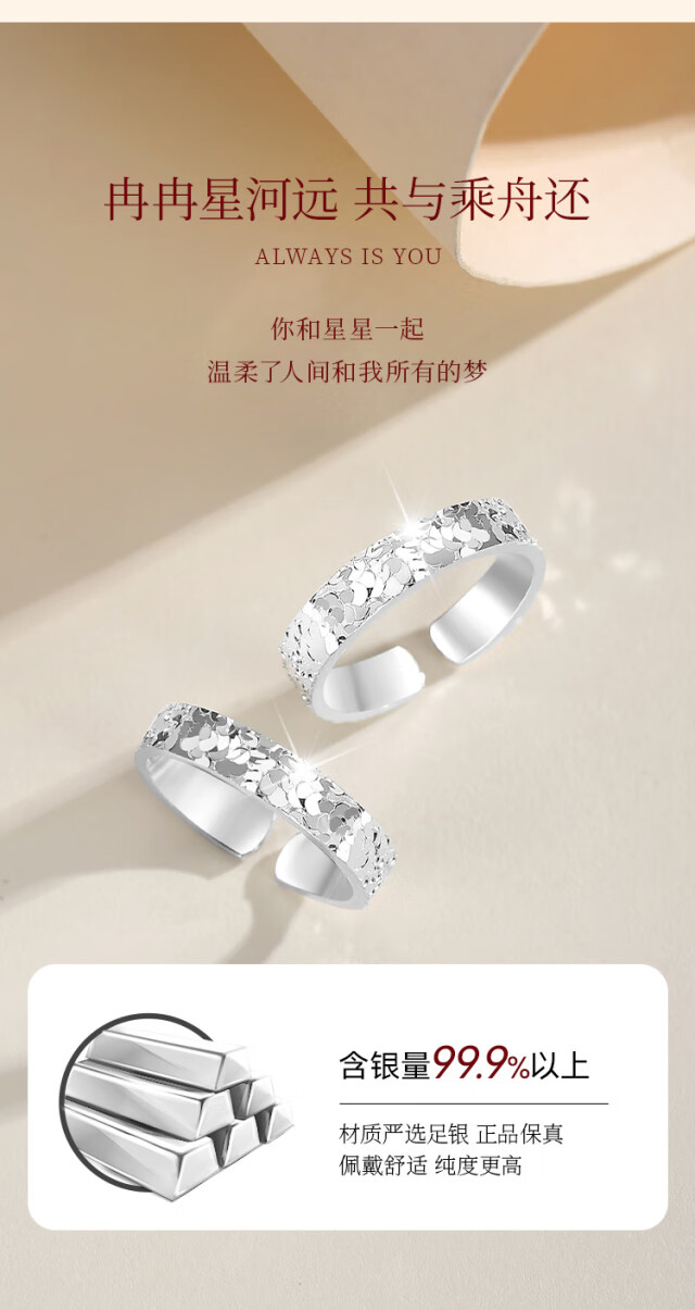 The only (Winy) 999 sterling silver couple ring pair, a pair of practical engagement rings, men's and women's birthday gift jewelry