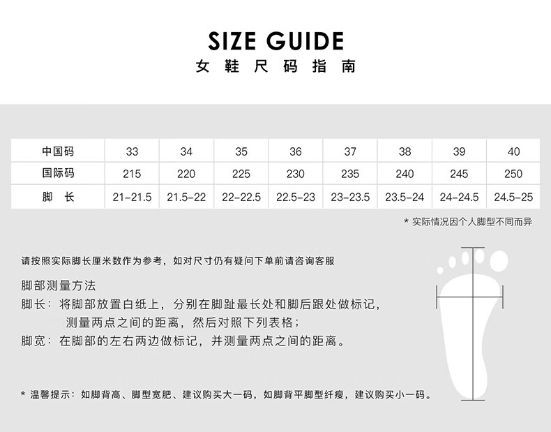 China (cm) 36 - 37 38 - 39 40 - 42 43 - 44 45 - 47