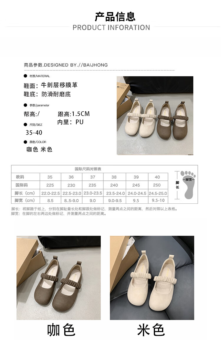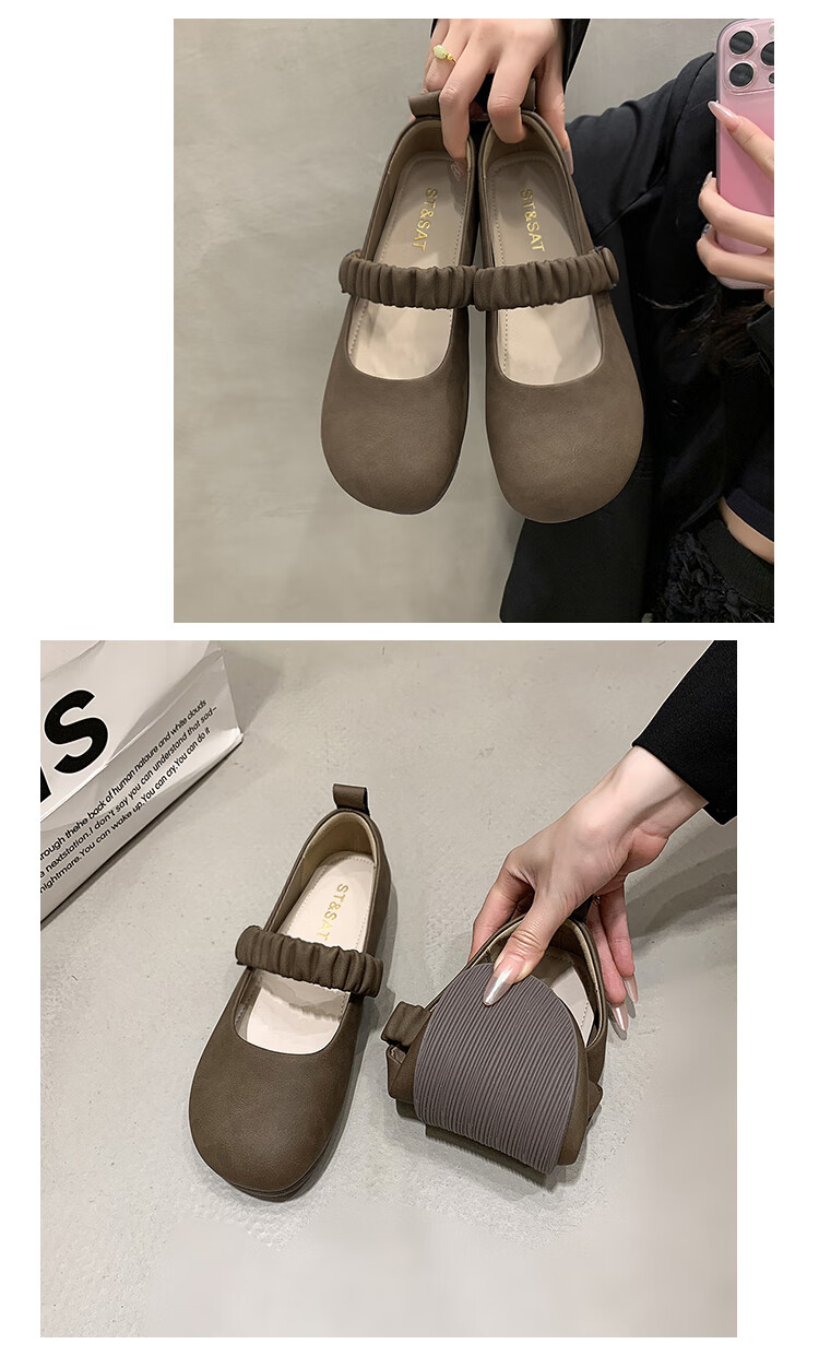 Saturday (St&Sat) Soft Sole Mary Jane Women's Single Slip-On Peas Flat Shoes Women's Shoes SSC111022D Camel 39