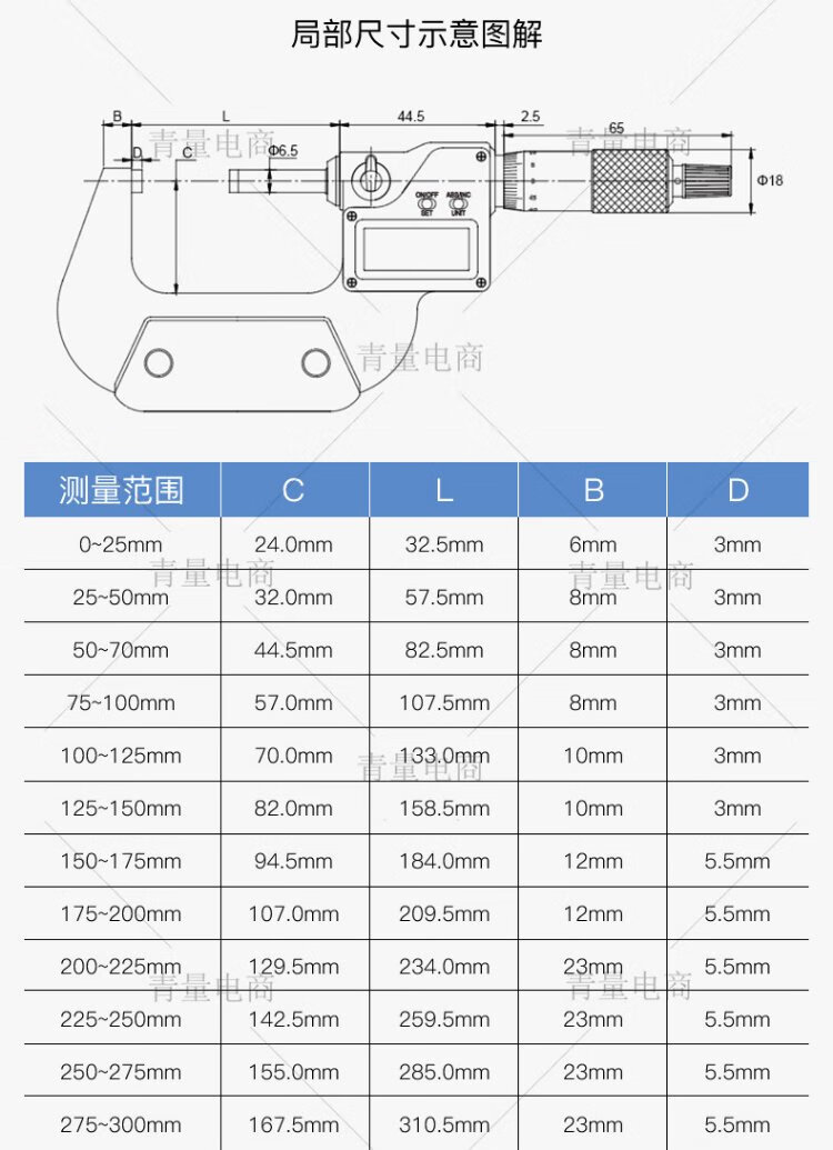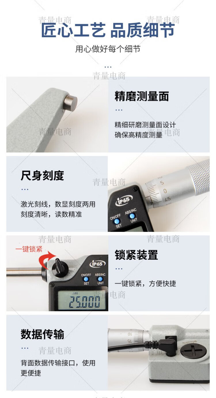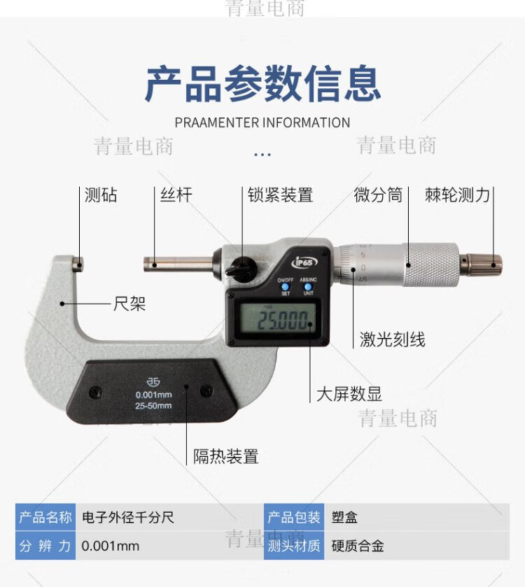 Northwest Qingliang electronic digital display outer diameter micrometer Qinghai measuring tool spiral micrometer high precision 0.001mm 133-03-454/50-75mm no data transmission interface