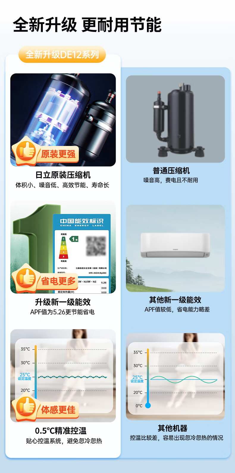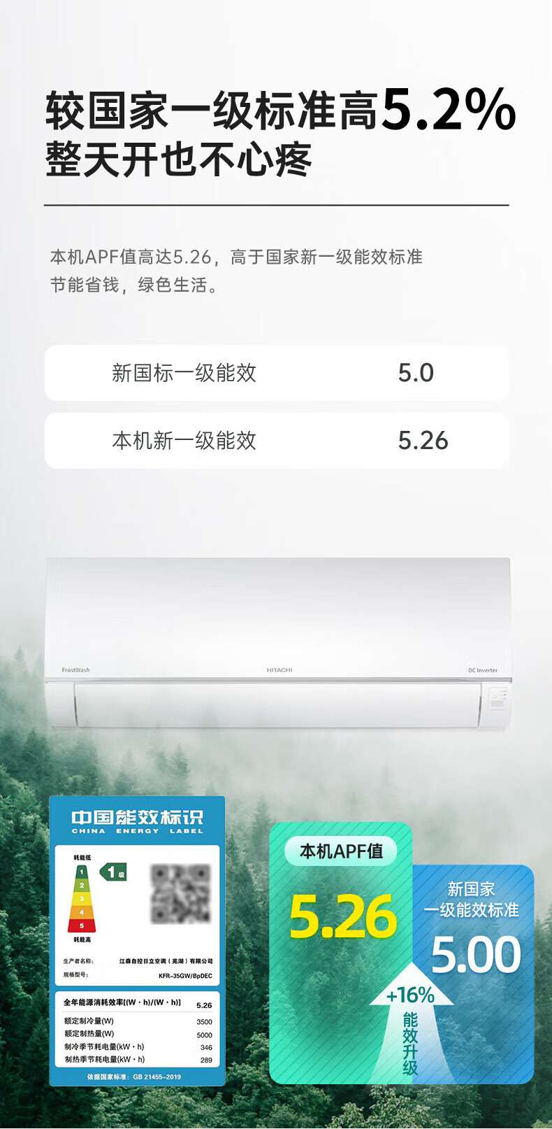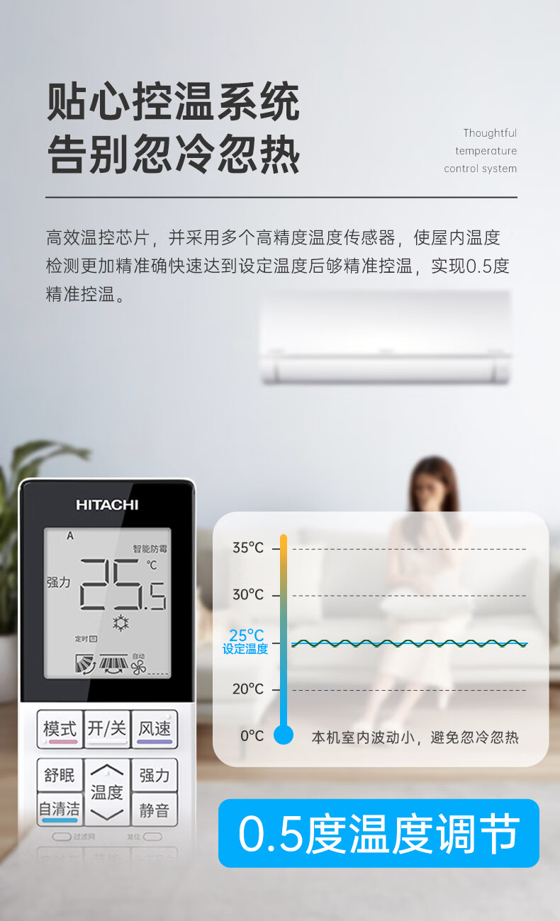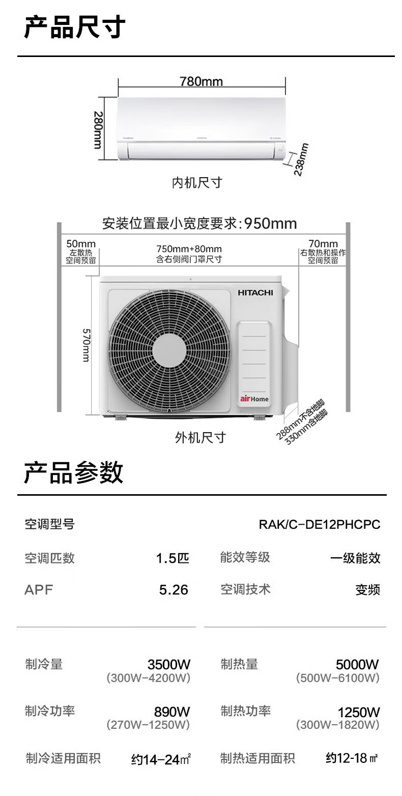 日立(HITACHI)白熊君DE 1.5匹新1级能效14-24㎡制冷面积变频冷暖健康风挂机国家补贴原装压缩机RAK/C-DE12PHCPC