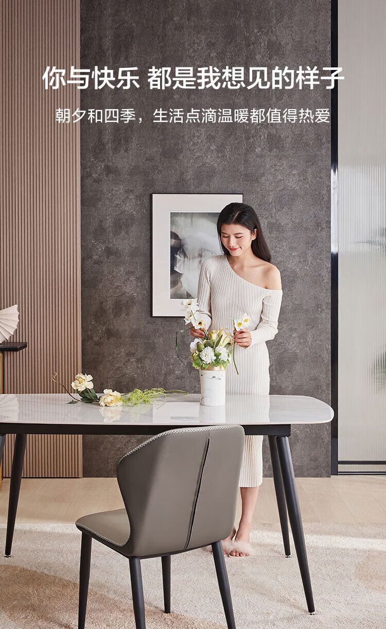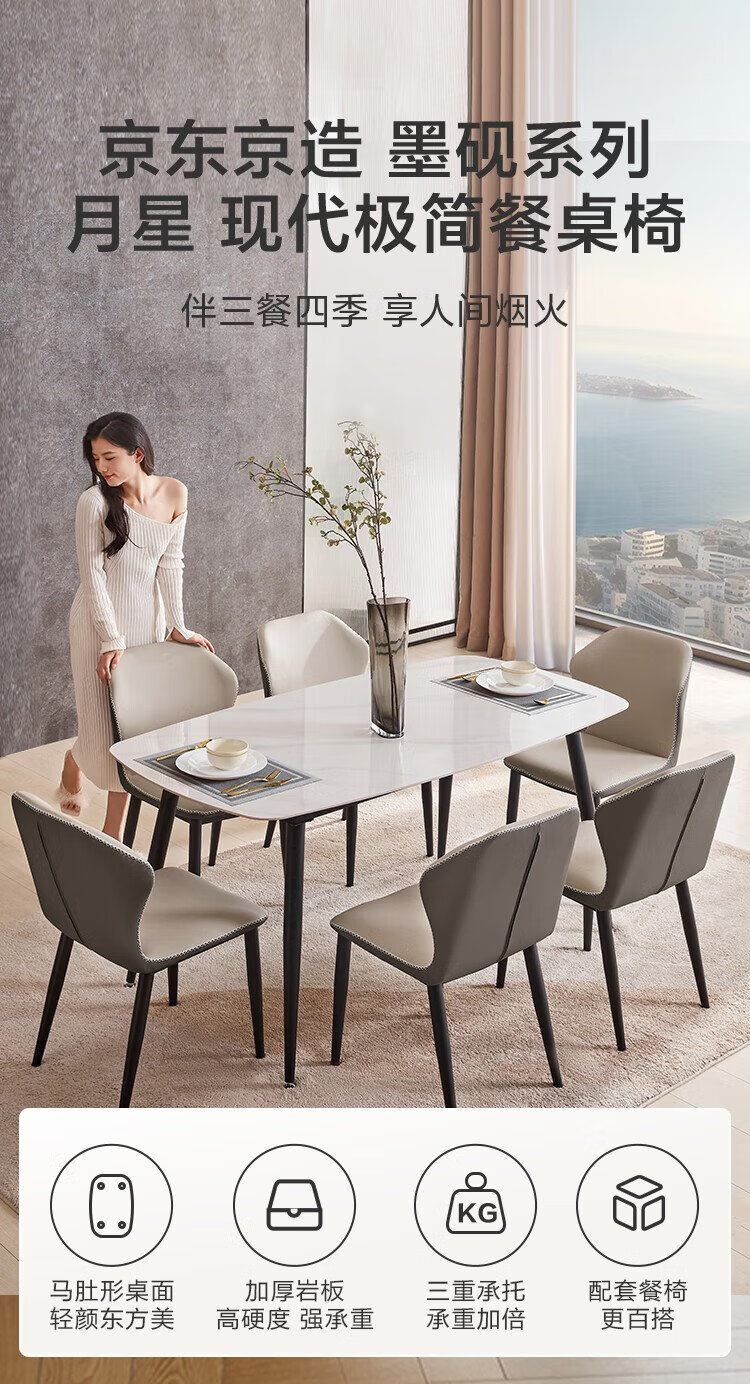 Jingdong Home Furnishing Yuexing Slate Dining Table Modern Simple Fashion Living Room Dining Table 1 Table 4 Chairs 1.4M National Subsidy