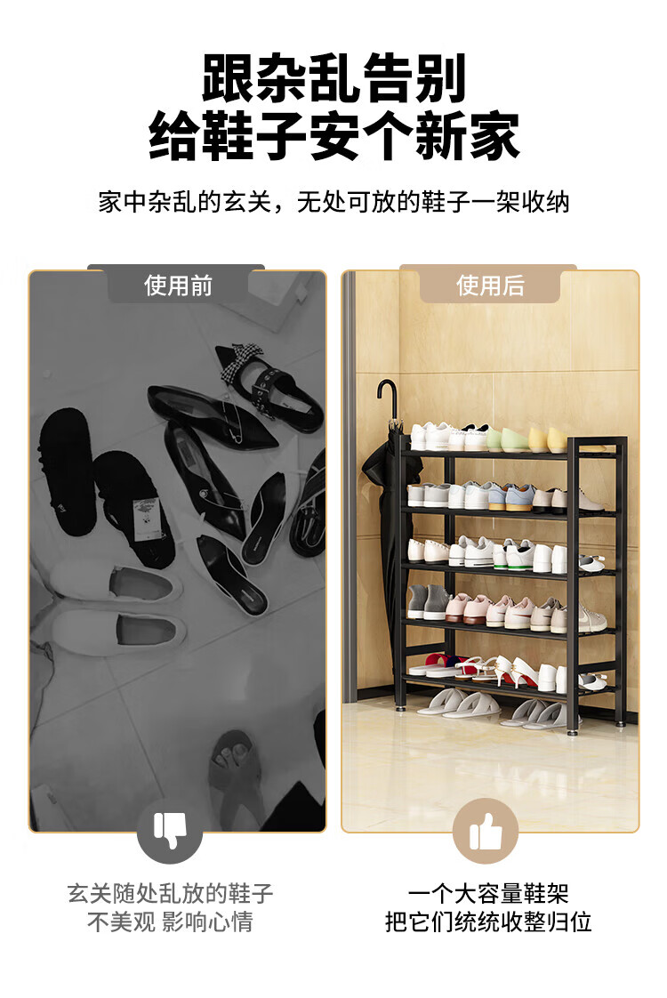 Yicai Nianhua Shoe Rack Doorway Small Multi-layer Household Shoe Storage Rack Vertical Home Iron Storage Rack Outdoor Shoe Cabinet 2416