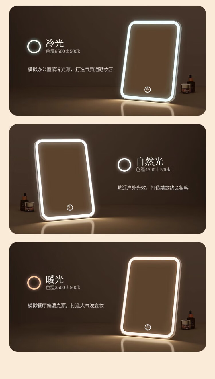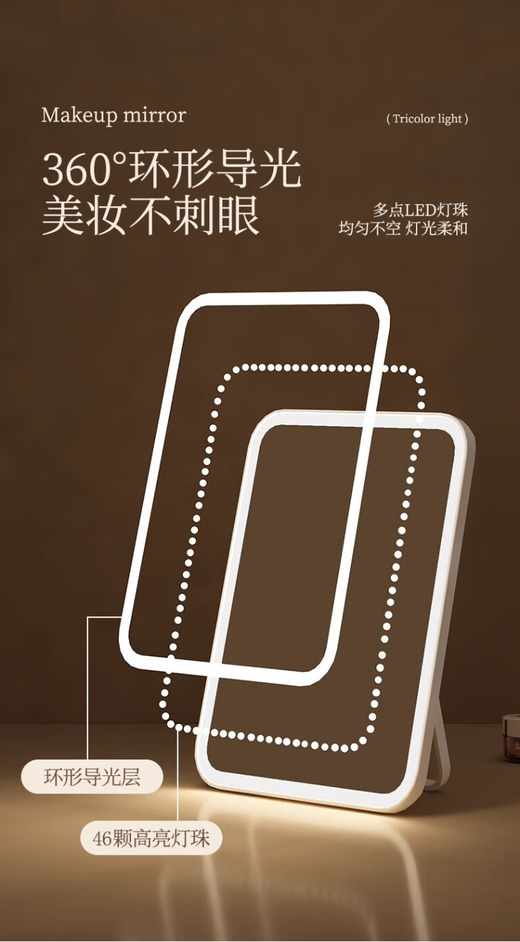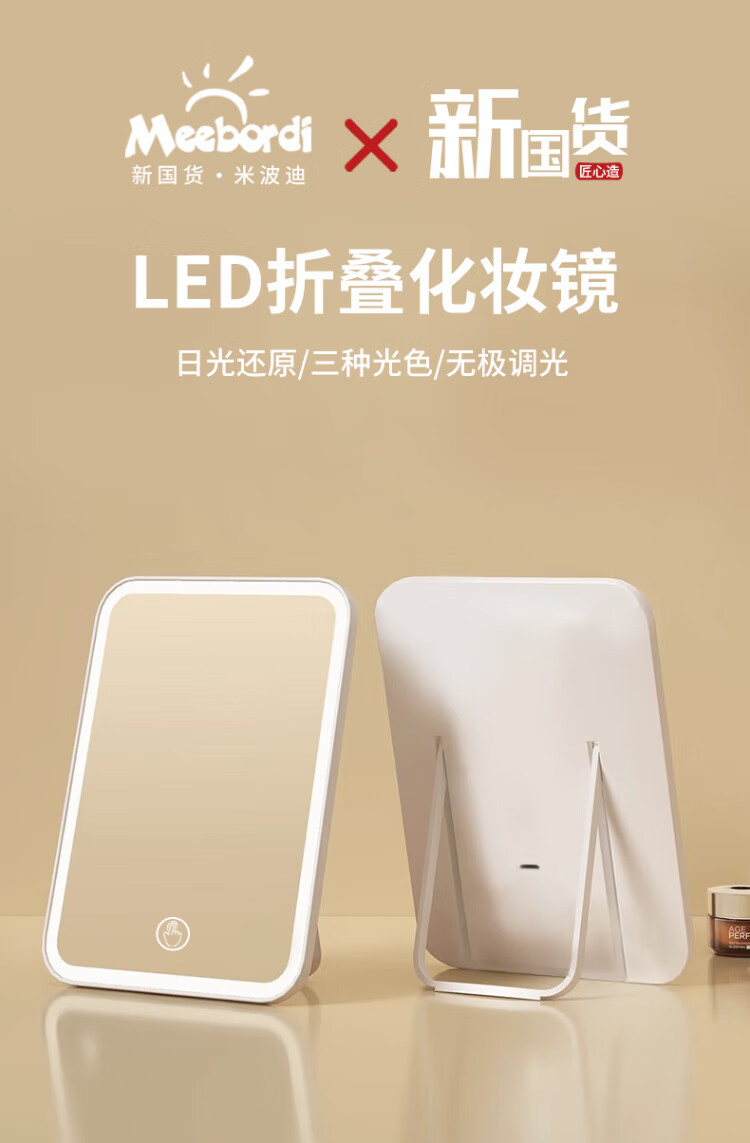 Meebordi Smart Makeup Mirror with Light LED Beauty Mirror Folding Portable Mirror Three-Color Fill-In Stepless Brightening Dressing Mirror Makeup Mirror Beauty Instrument Lamp Birthday Gift for Women Price Guaranteed Double 11