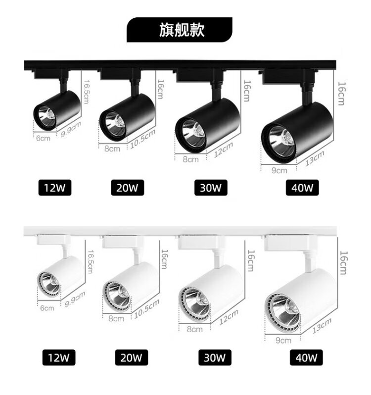 CANMEIJIA LED spotlight track light surface-mounted super bright commercial clothing store exhibition hall background wall track light ceiling ceiling light 20W-black (warm yellow light)