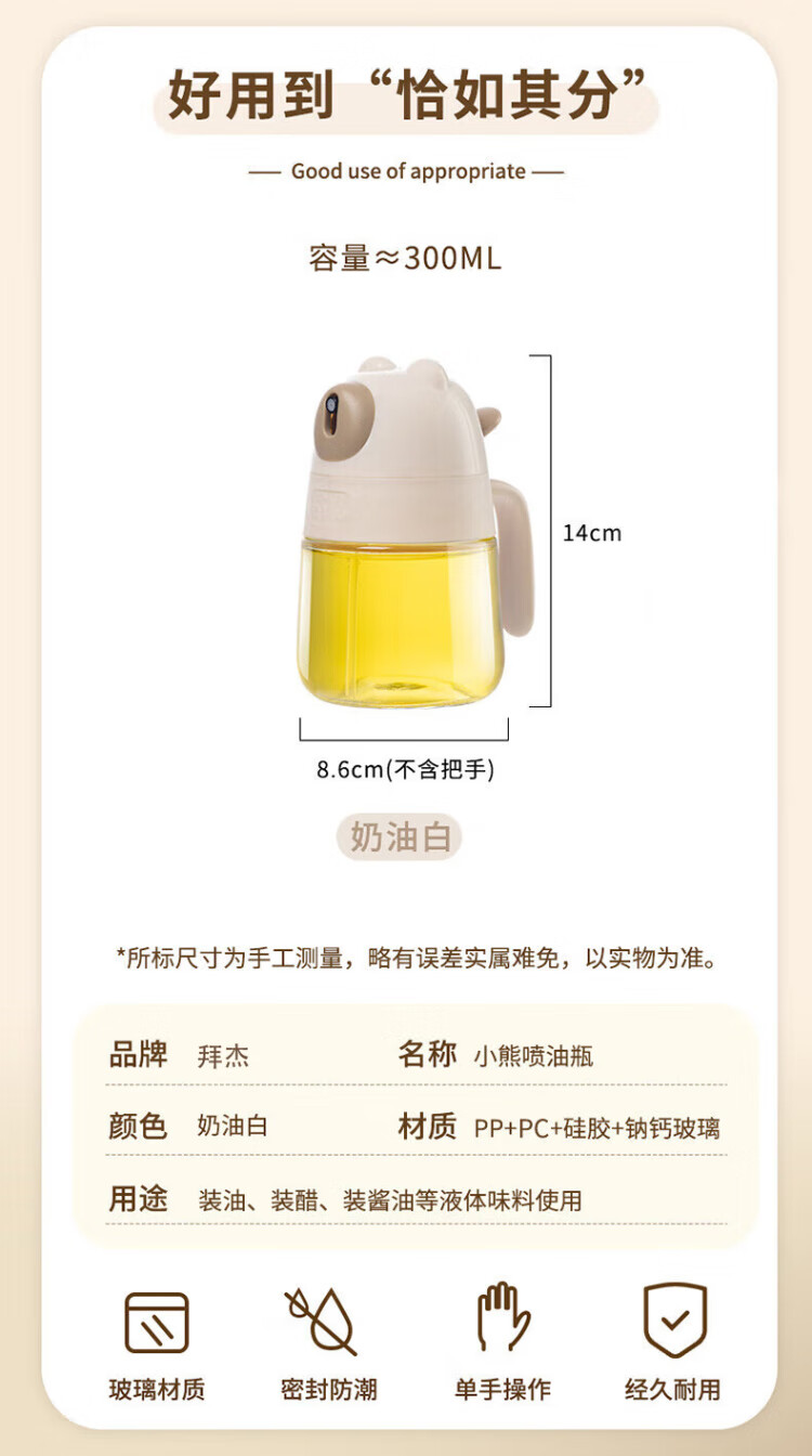 Baijie glass atomized spray bottle soy sauce bottle kitchen household barbecue spray bottle leak-proof no oil condiment bottle cream white
