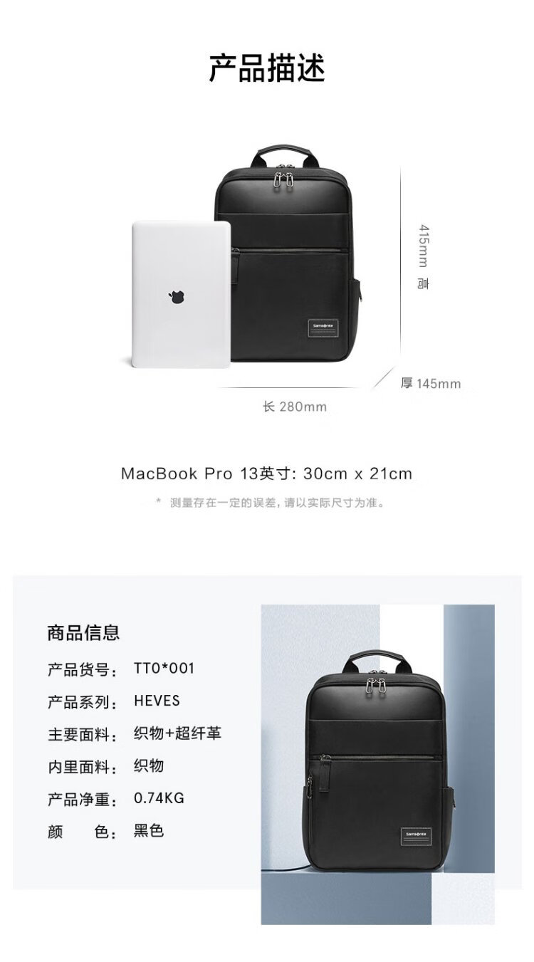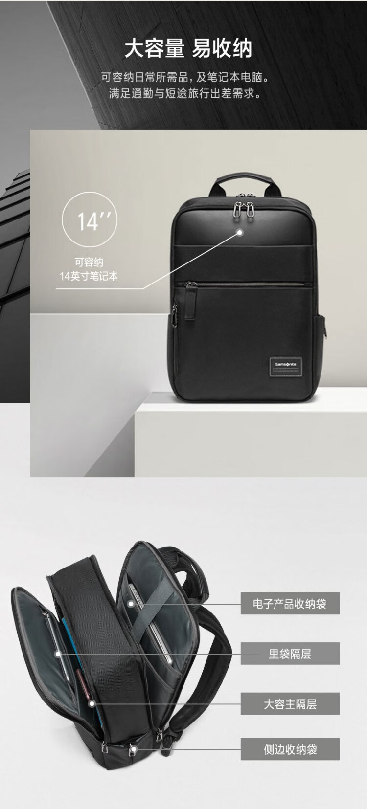 Samsonite Computer Bag Backpack 14-inch Laptop Backpack Men's Business Commuting Bag Upgrade TT0*003