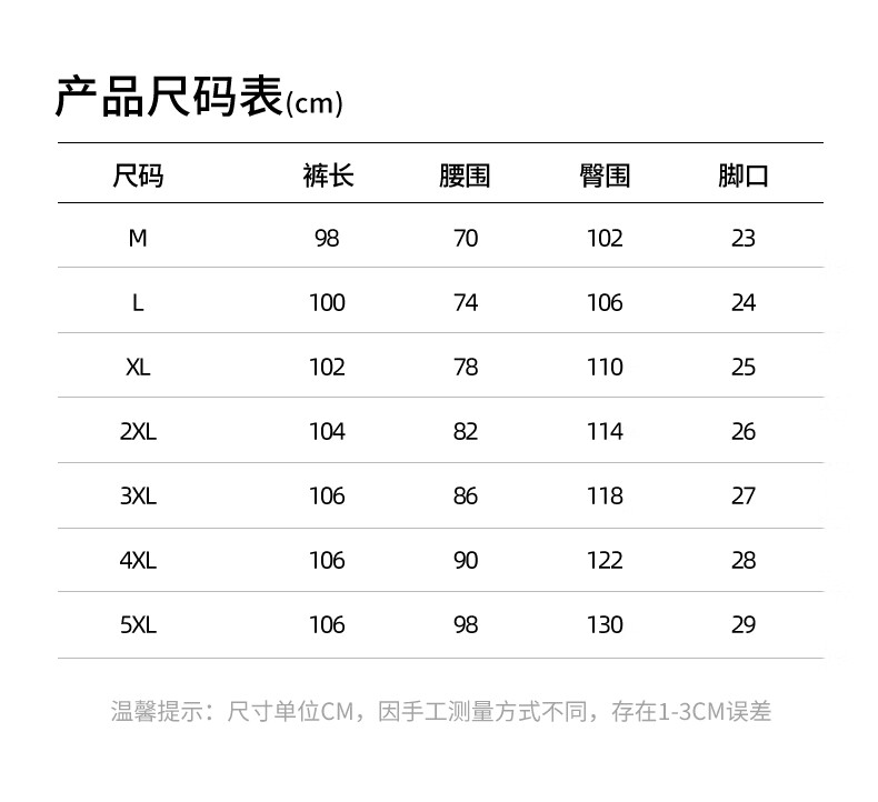 Outseam (cm) 99 cm 101.5 cm 104 cm 106.5 cm 109 cm