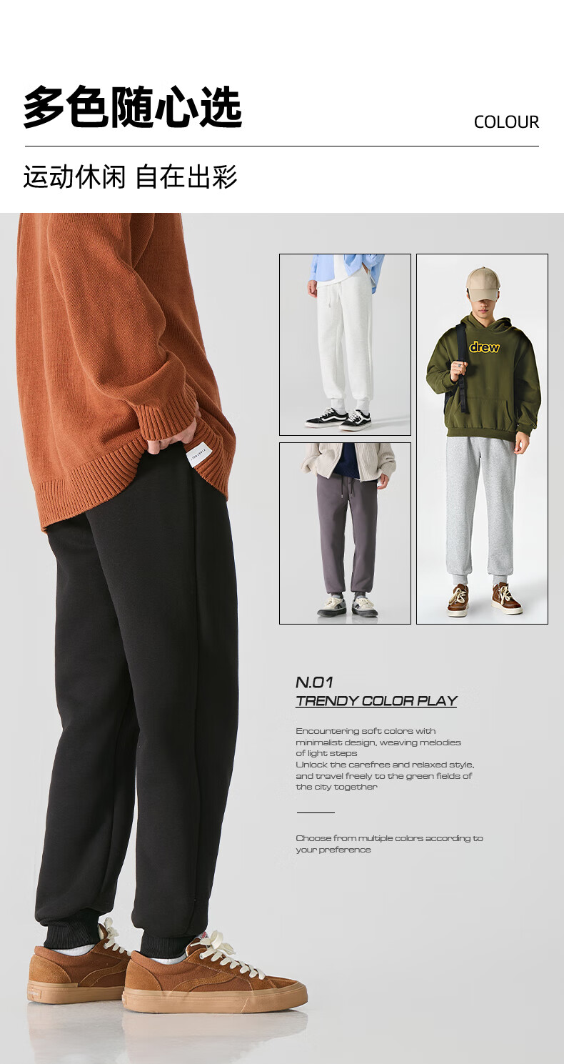 Baleno casual pants men's heavyweight 320G autumn trendy sports youth American casual loose versatile pants for men