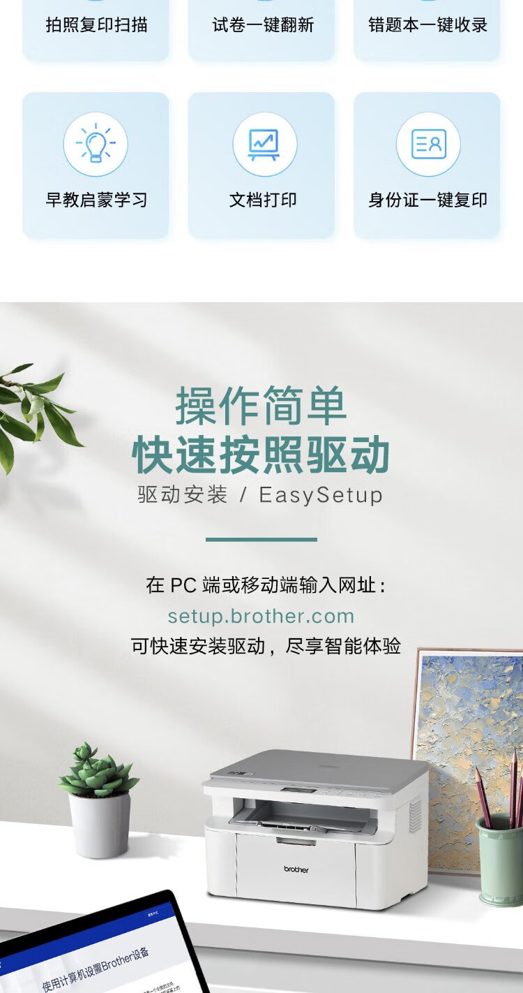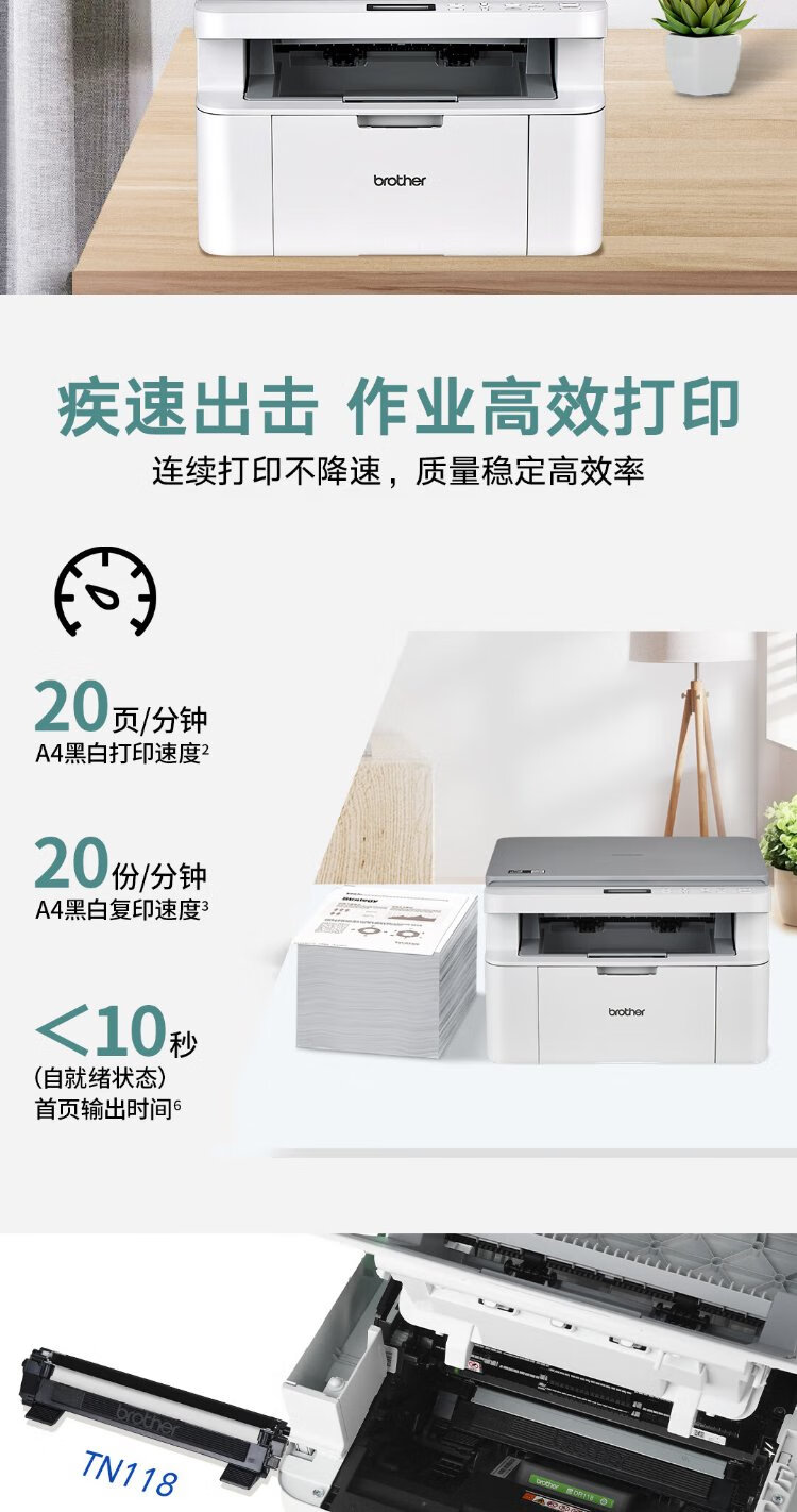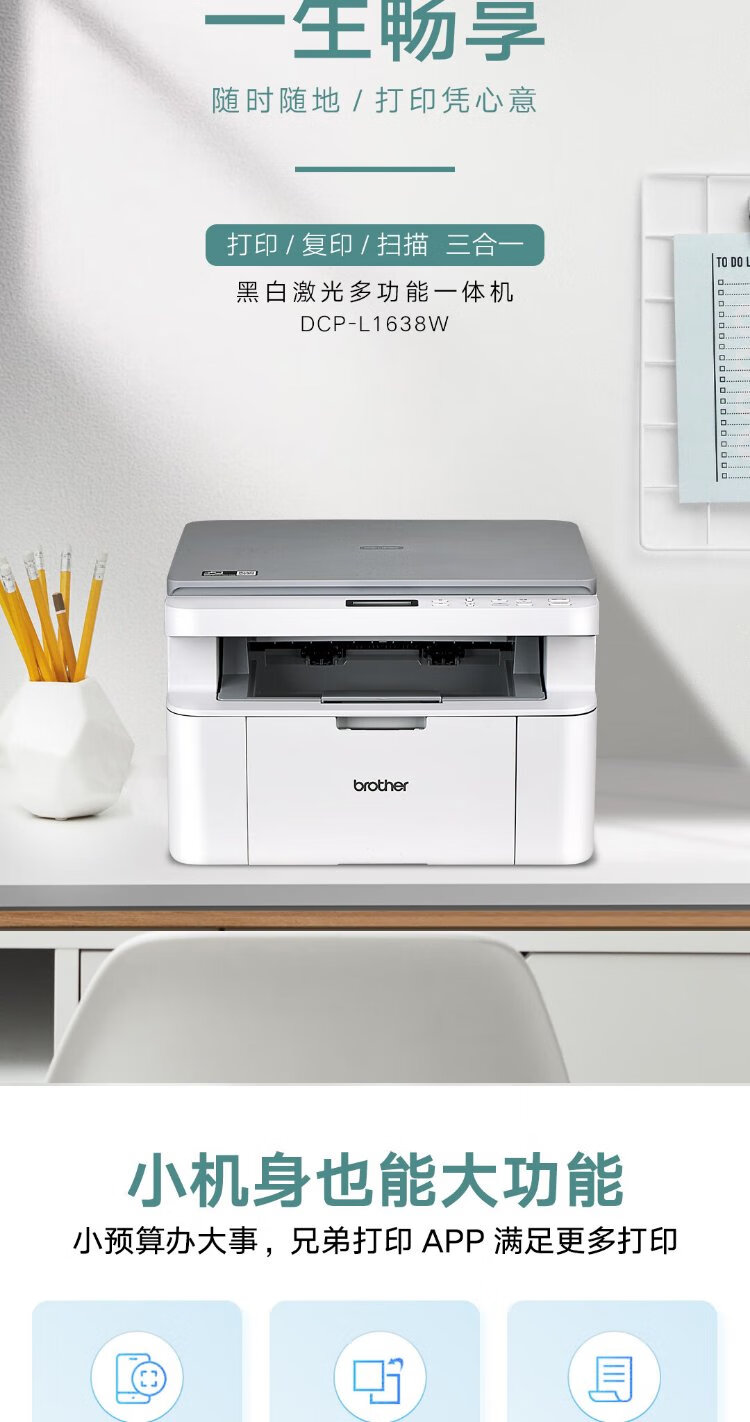 Brother DCP-L1638W black and white laser student homework home printer supports WeChat remote operation printing, copying and scanning multi-function all-in-one machine