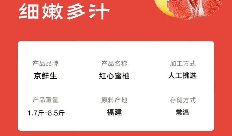 Jingxiansheng Fujian Guanxi Red Heart Honey Pomelo 2 pieces, net weight 4-4.5Jin Jin is equal to 0.5kg, fruit gift box, straight from the source