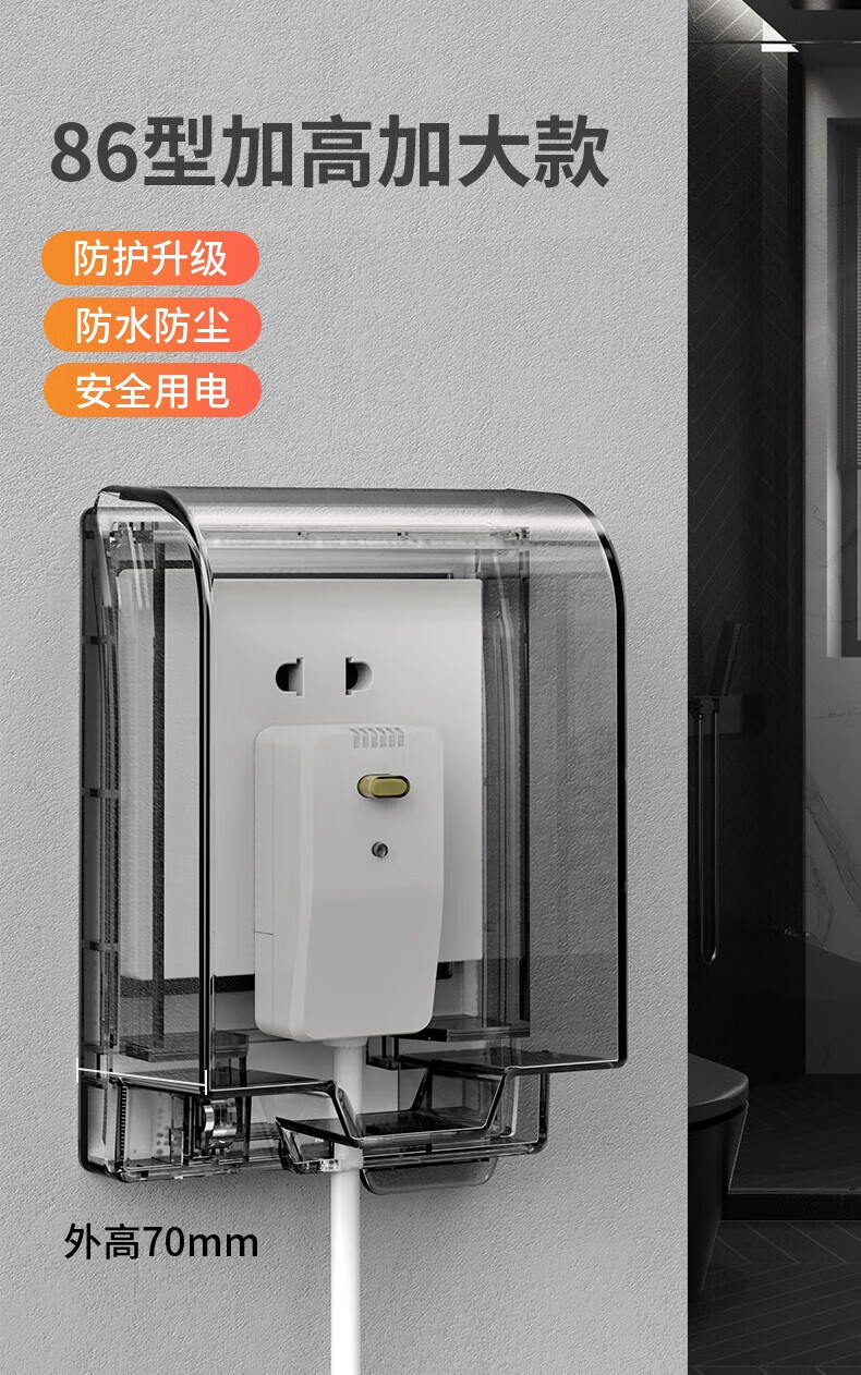 International Electrician Type 86 Heightened and Extended Socket Waterproof Cover Adhesive Leakage Switch Splash-proof Box Protective Cover Cover Self-adhesive Waterproof Box Transparent Paste Model (Comes with Code Lock)