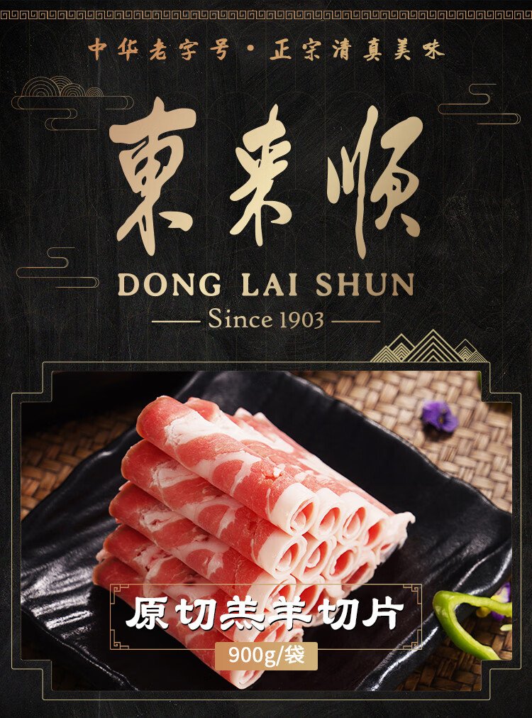Donglaishun Inner Mongolia Lamb Raw Cut Meat Rolls Net Weight 1.8 Jin Jin equals 0.5 kg Hot Pot Lamb Slices Halal Chinese Time-honored Brand