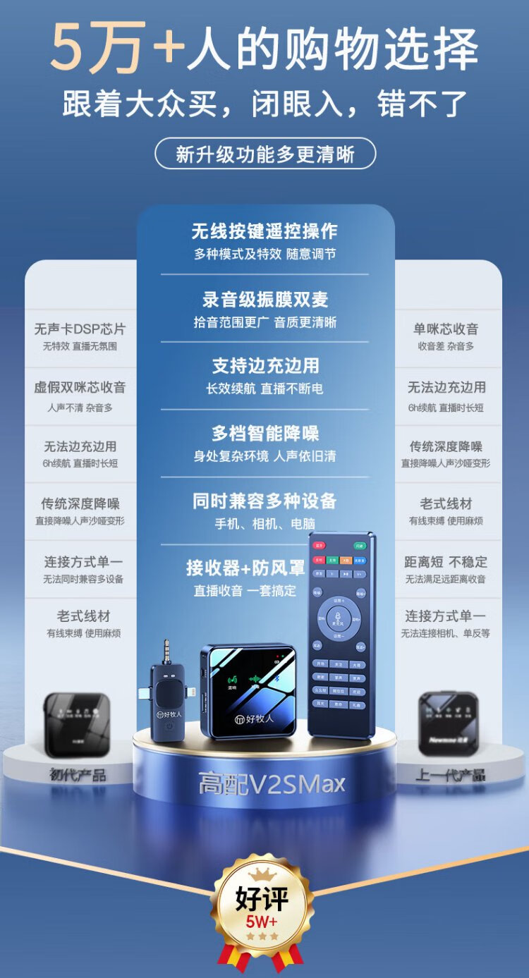 Good Shepherd wireless lavalier microphone one-to-two radio microphone outdoor noise reduction video shooting equipment with recording and live broadcast equipment Douyin Internet celebrity anchor singing K-singing mobile phone special sound card