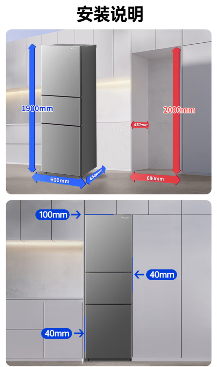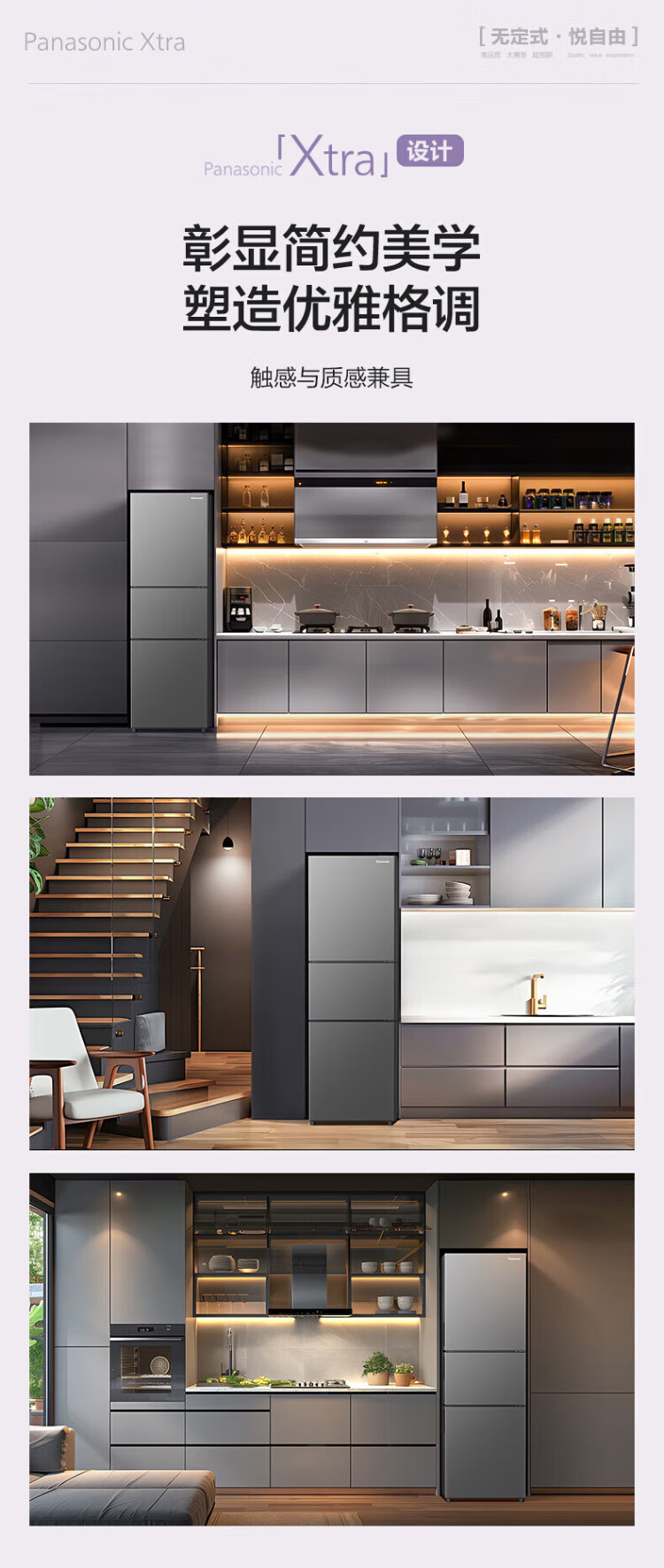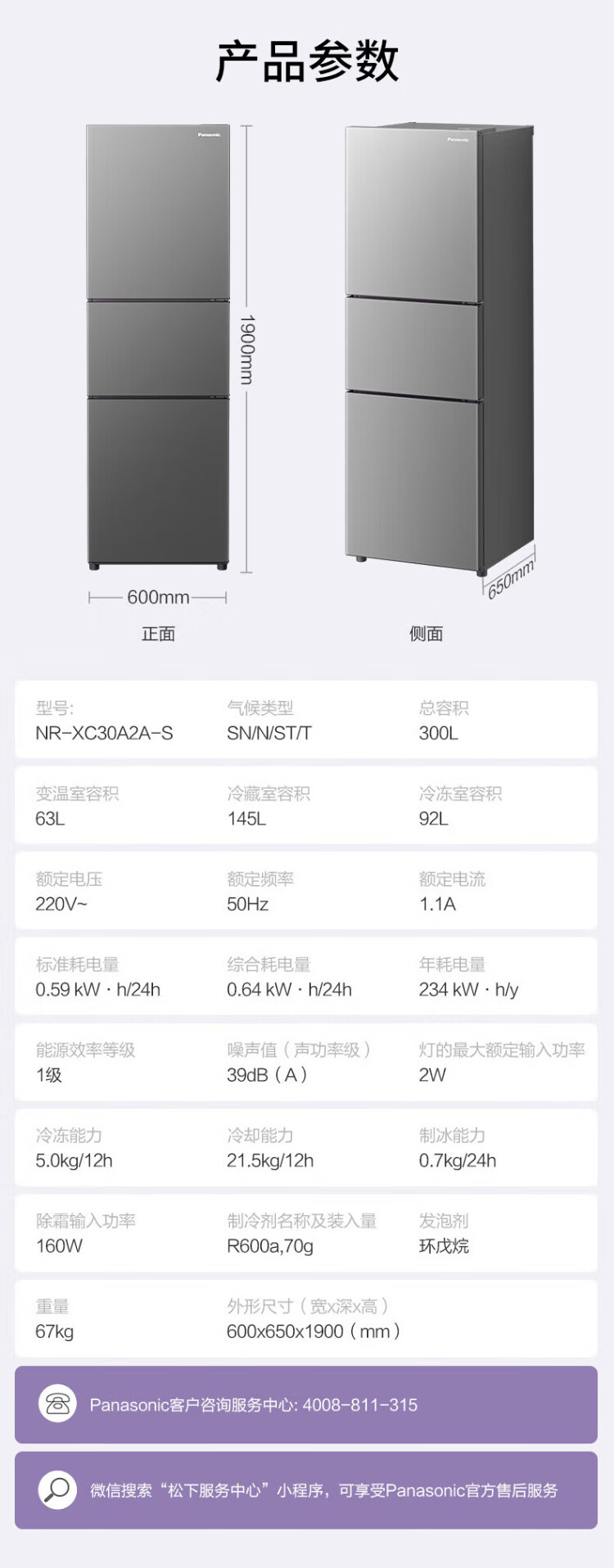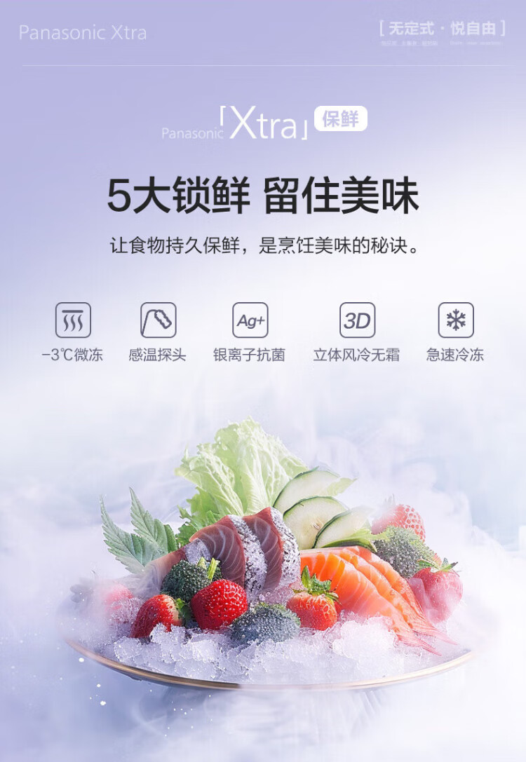 松下(Panasonic)【国家补贴20%】Xtra蔓越莓300升家用小型冰箱三开门超薄无霜自动制冰【一级能效】NR-XC30A2A-S
