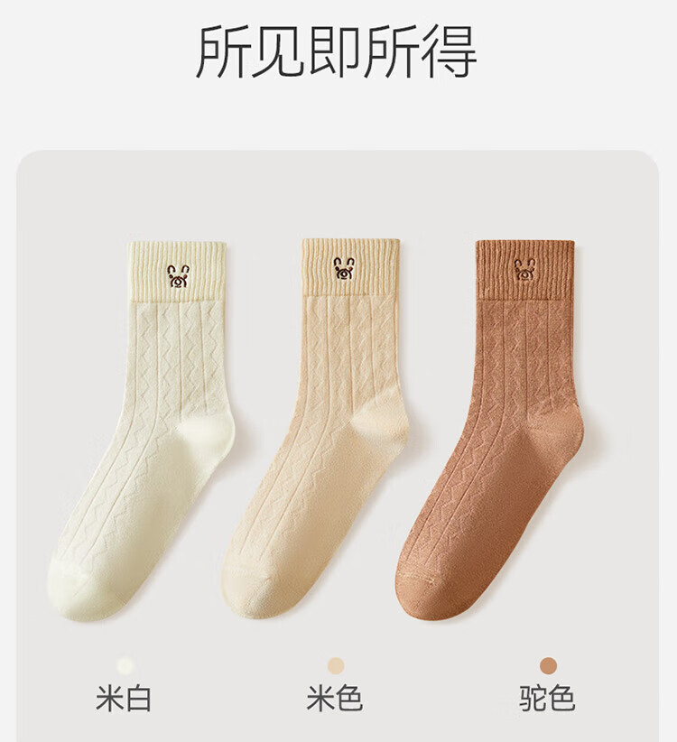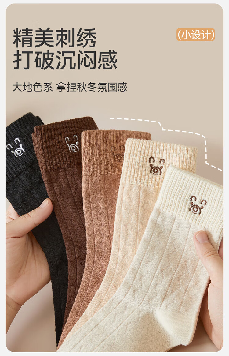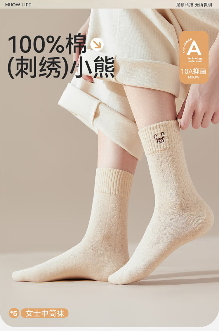 Catman women's socks for women 100% cotton 10A antibacterial autumn and winter bear embroidered mid-calf socks for women 25 years new 5 pairs